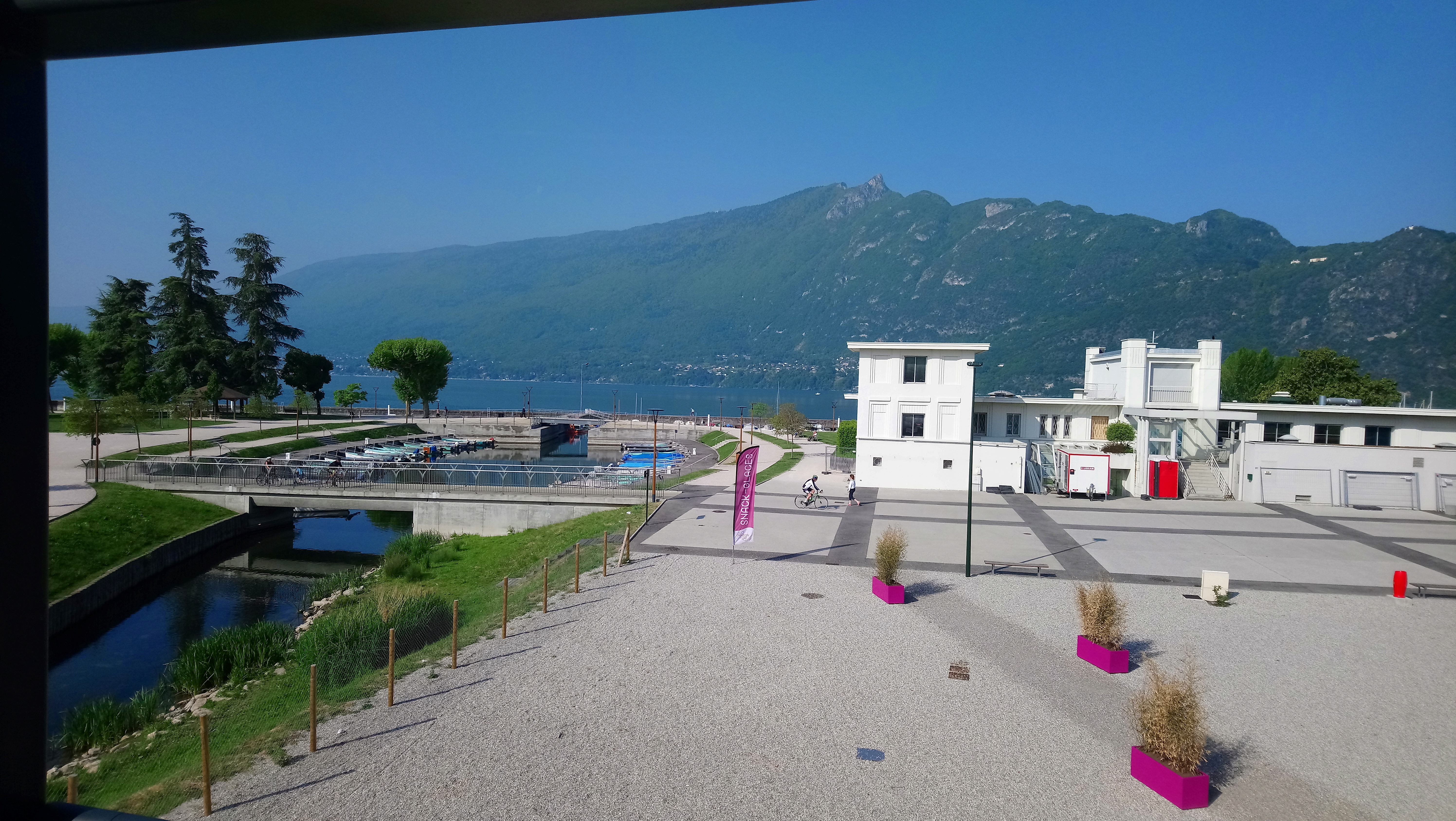 Je suis venu à la Maison du Lac pour la première fois et je trouve l'endroit vraiment très sympa pour venir boire un café... Et se détendre. Le tout en profitant d'une superbe vue sur le petit port, le lac et la Dent du Chat. De plus, l'accueil a été sympathique et souriant. Le prix du café est identique aux prix pratiqués en ville.