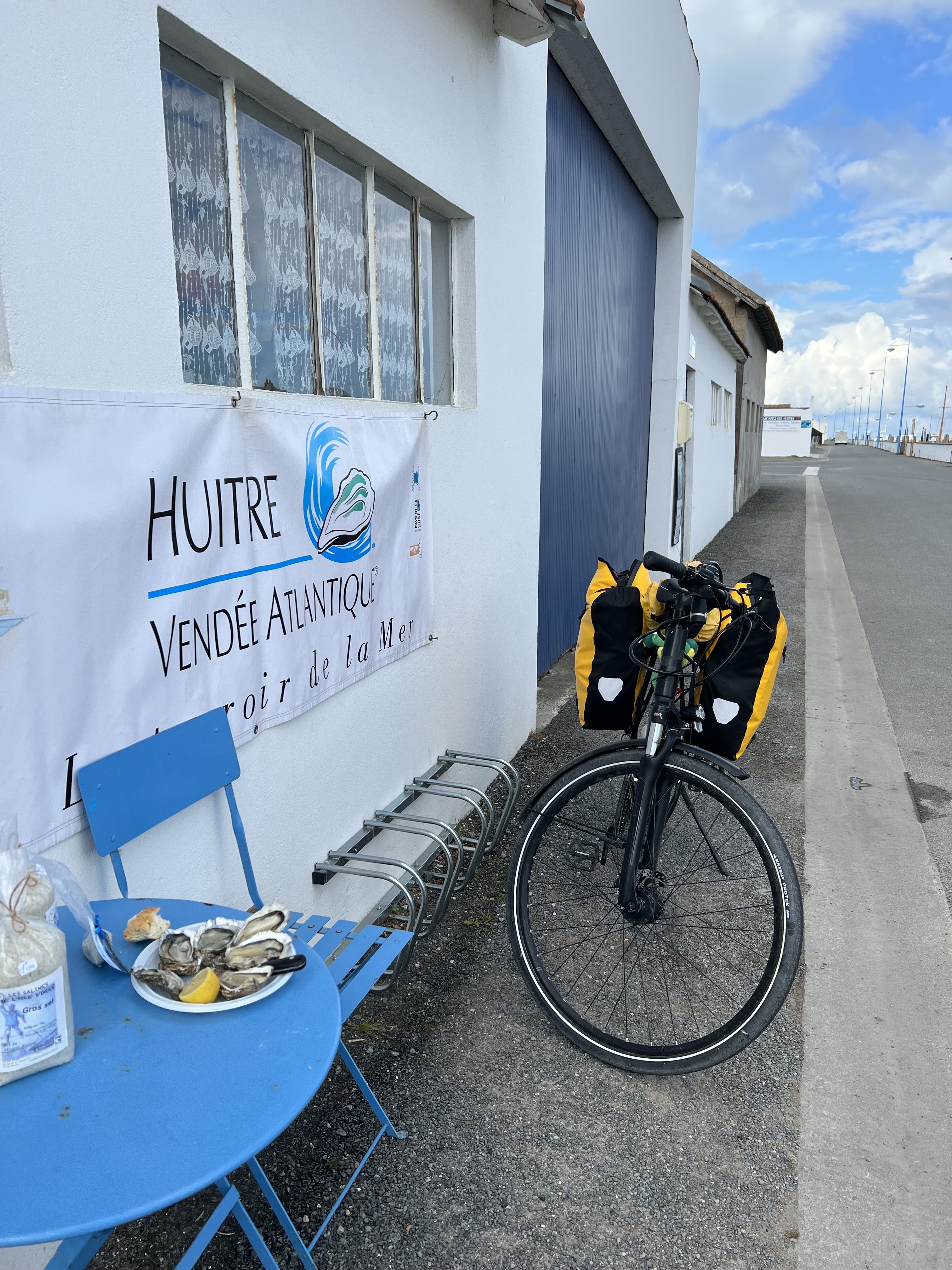 Je suis passé ici sur l'eurovelo1. Je n'ai pas trouvé de boulangerie mais j'ai trouvé ce petit bijou. Il y avait des huîtres pour le petit déjeuner. Vous devez vous arrêter ici. C'est une expérience. Belle propriétaire au cœur ouvert. Elle vend aussi de la baguette.