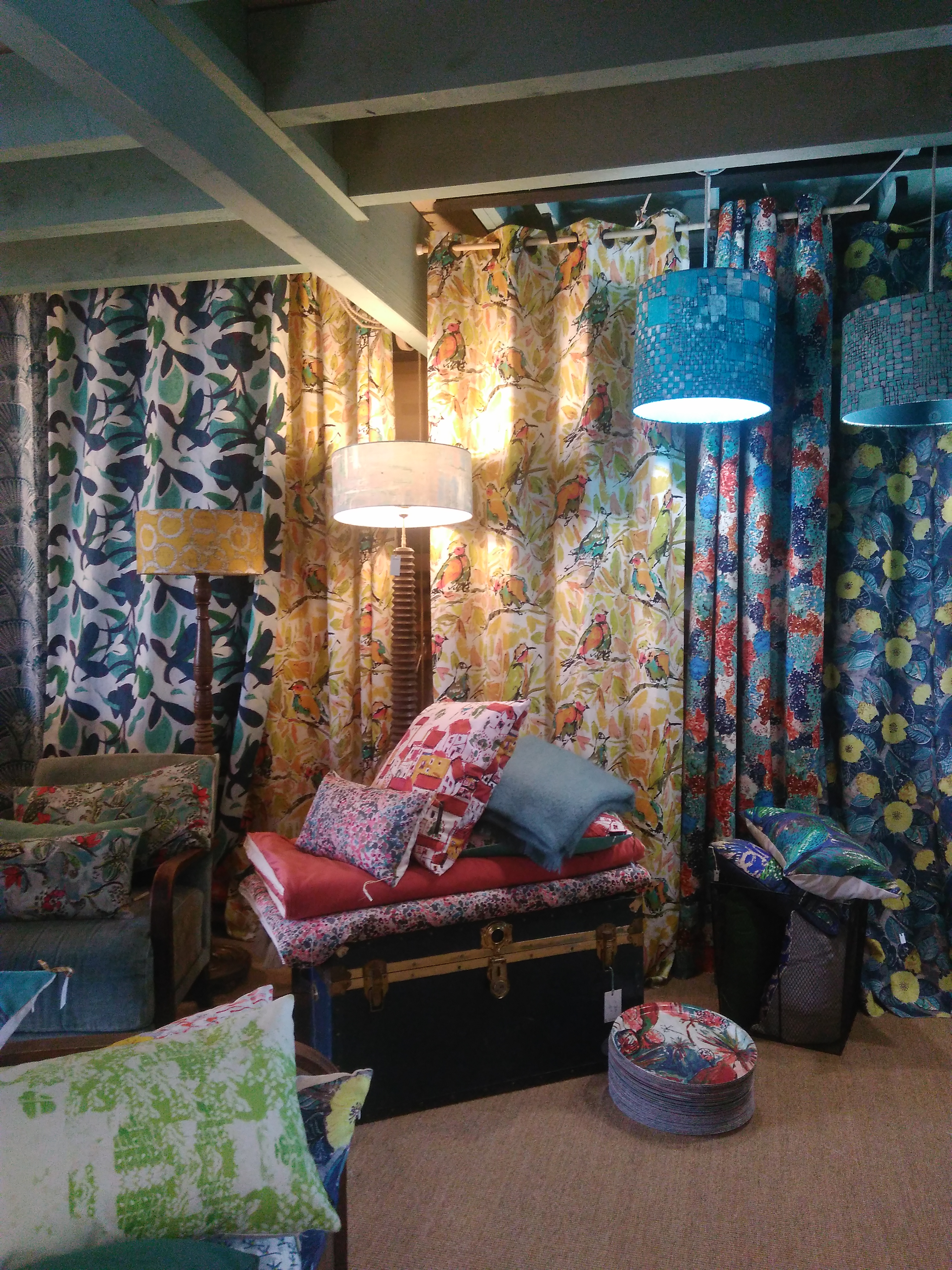Tellement beau et coloré ! On se met immédiatement de bonne humeur quand on entre dans ce beau magasin. J'aurais adoré tout acheter. Malheureusement, seul un petit abat-jour rentre dans le coffre - mais c'est un rêve !
