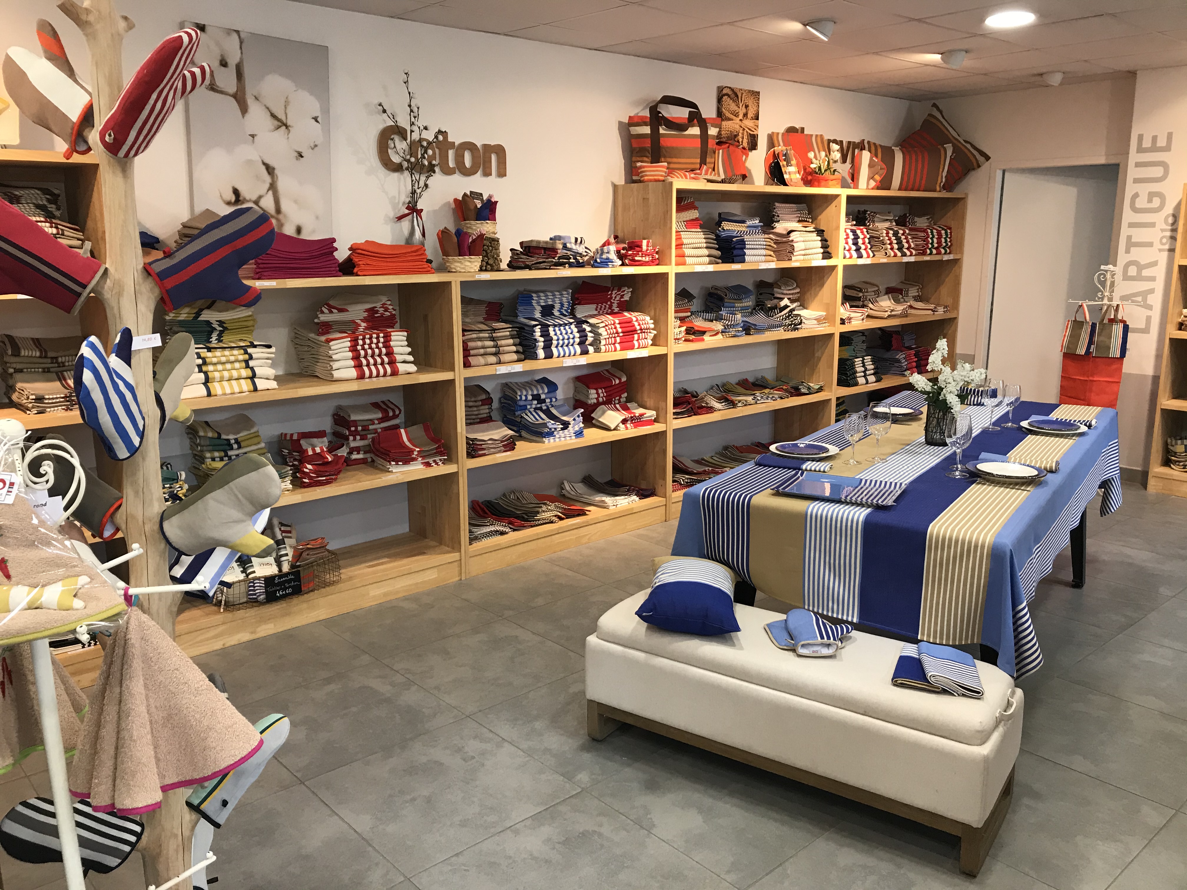 Je craque à chaque fois que je vais dans cette boutique. Les tissus et les motifs sont superbes. J'ai récemment pu visiter l'atelier et ça a été une très belle découverte. Les articles de table sont teintés, tissés et cousus à Lartigue pour ces deux derniers. Une belle entreprise Française ! Merci à la responsable de la boutique d'avoir pu nous immerger dans l'histoire de l'entreprise et de la région.