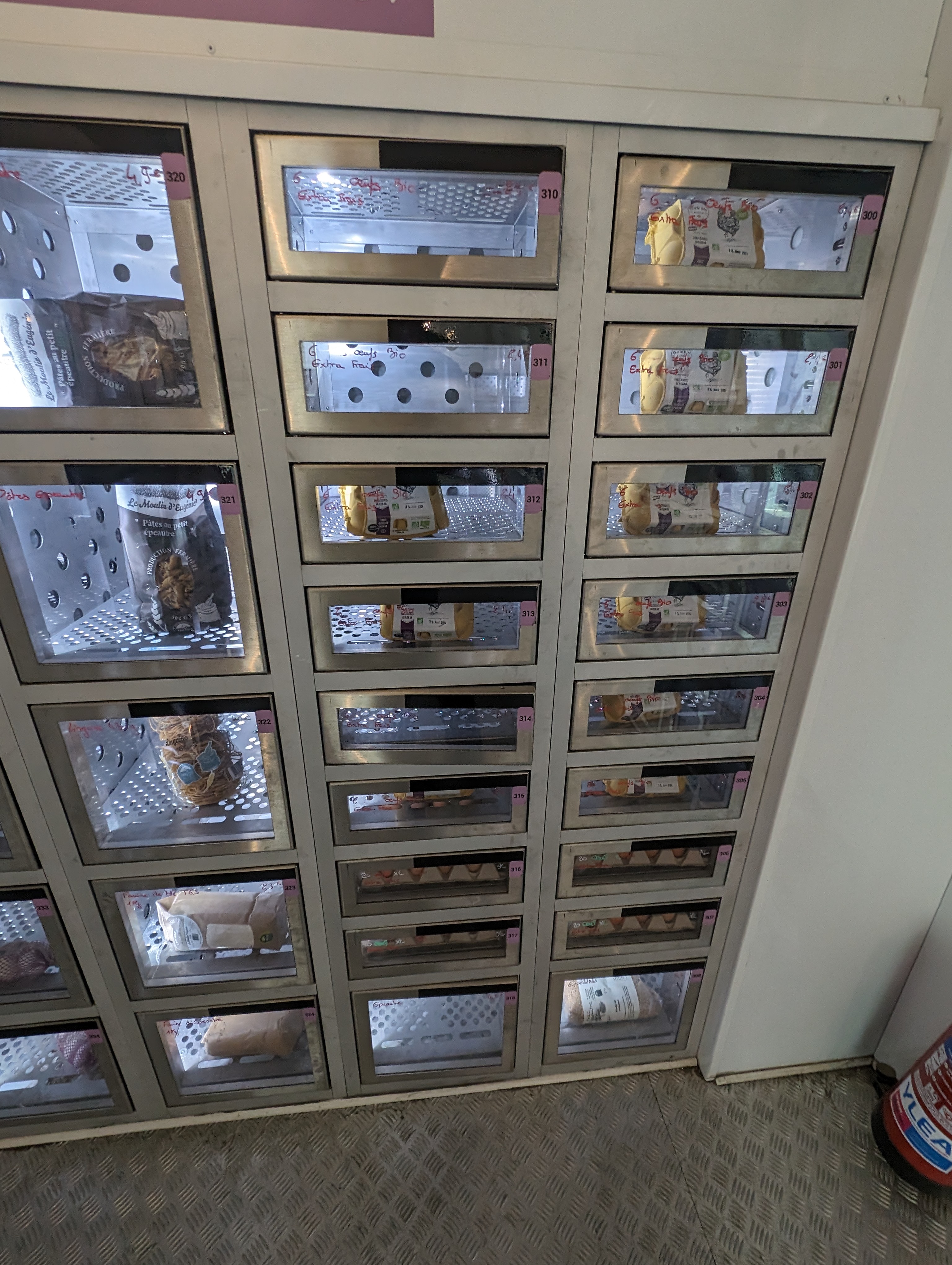 Très pratique et aucune mauvaise surprise sur les produits jusqu'à présent. Une piste d'amélioration pourrait être d'indiquer un peu mieux les casiers qu'on vient de débloquer (une diode verte par exemple) C'est pas la première fois que je passe après des gens et que je me rends compte que ces derniers ont oublié des produits.