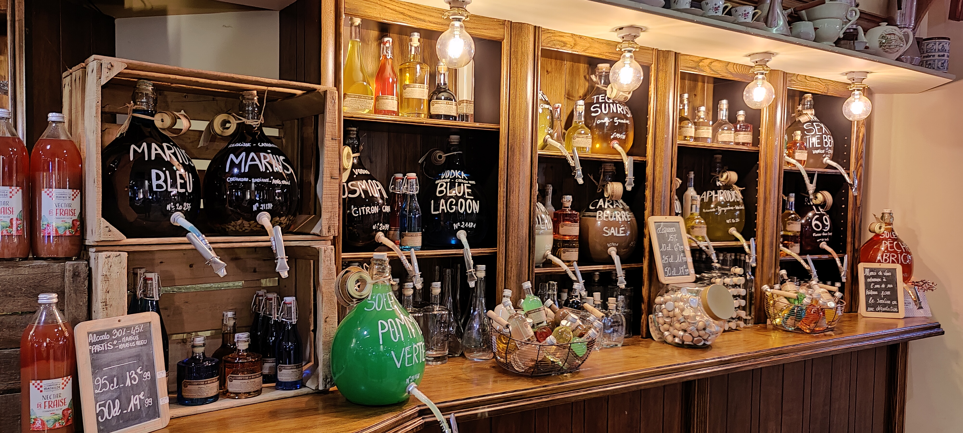 Pour y avoir été le week end dernier...nullissime..j habite le coin et lors de venu d amis nous y allions souvent...là je crois c est la derniere...impossible de gouter quoi que ce soit..tout est vide..impossible de commander meme les liqueur(on a pas le droit de se servir..il y a juste 2 employés qui n ont aucune envie de nous faire gouter..surtout qu il y a aussi les encaissements a faire..bref..je voyais depuis qqs annees le comptoire se deterioré..aujourd hui..leur prix casi innabordable..une ambiance ou on a l impression de deranger lorsque l on demande a gouté..moralité..vu l ambiance..nous repartirons sans liqueur..sans chocolat(en plus leur emballage direct ds du carton degrade le gout du chocolat qui prend le gout du carton)...fini pour nous..on n y retournera plus...