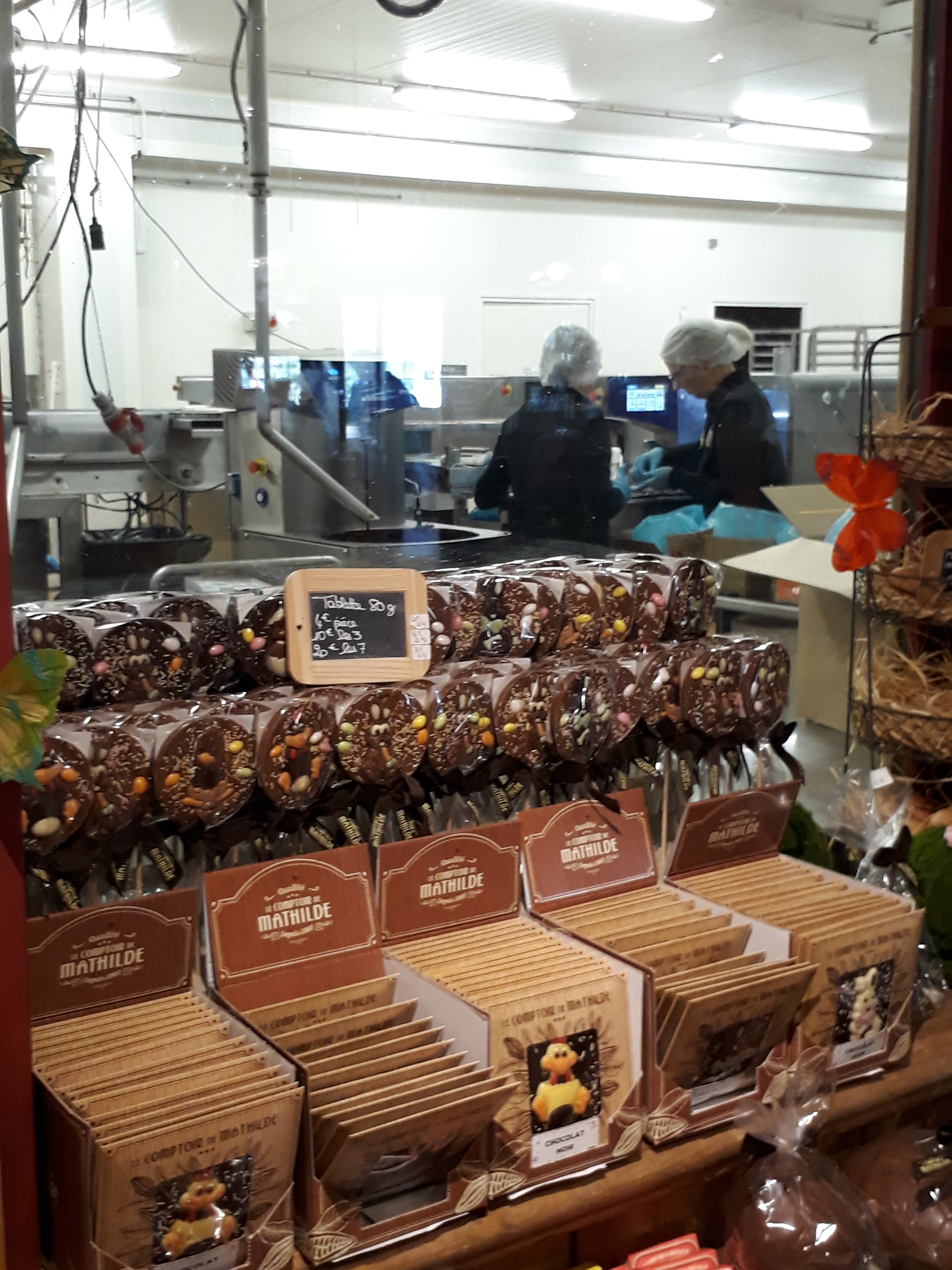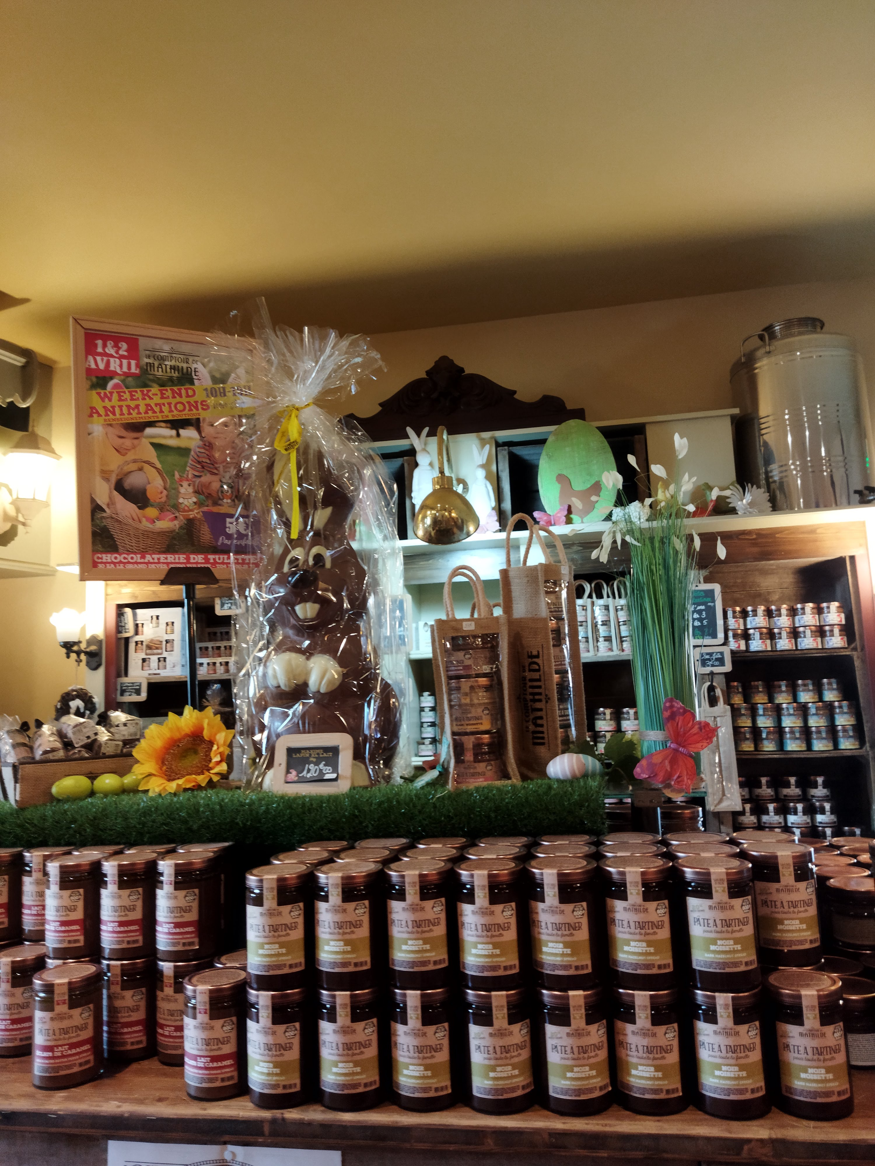 Jolie Boutique de chocolat. En pleine saison de pâques. Jolies moulages en chocolat. Je ne connais pas la qualité des chocolats car ils sont chers. Quant à l'huile, le sel et le poivre.....je me demande ce que ça fait là....