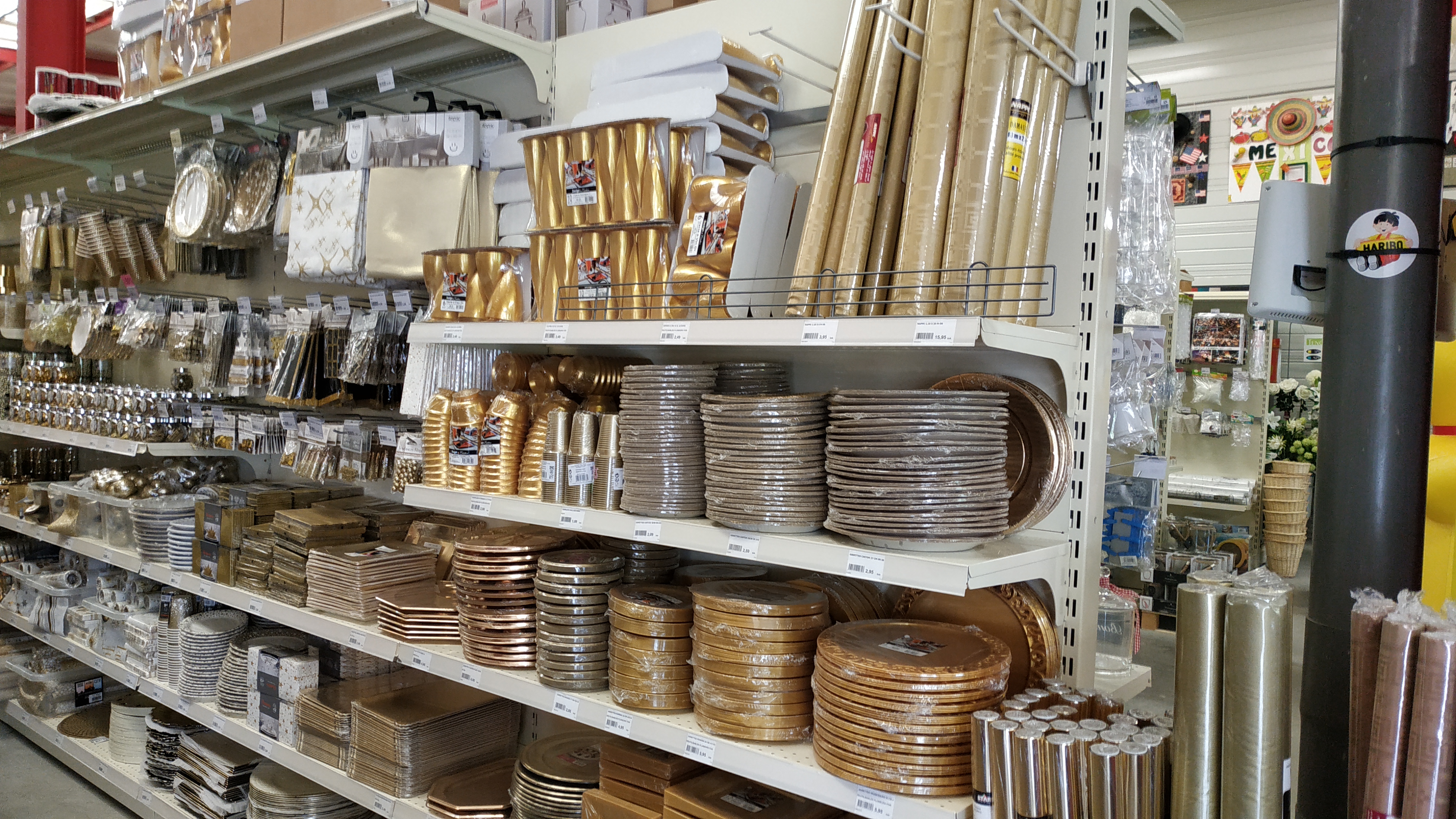 tout pour faire la fête : de la vaisselle à la déco, en passant par les dragées, bonbons et feux d'artifices. il y a même un rayon loisirs créatifs.