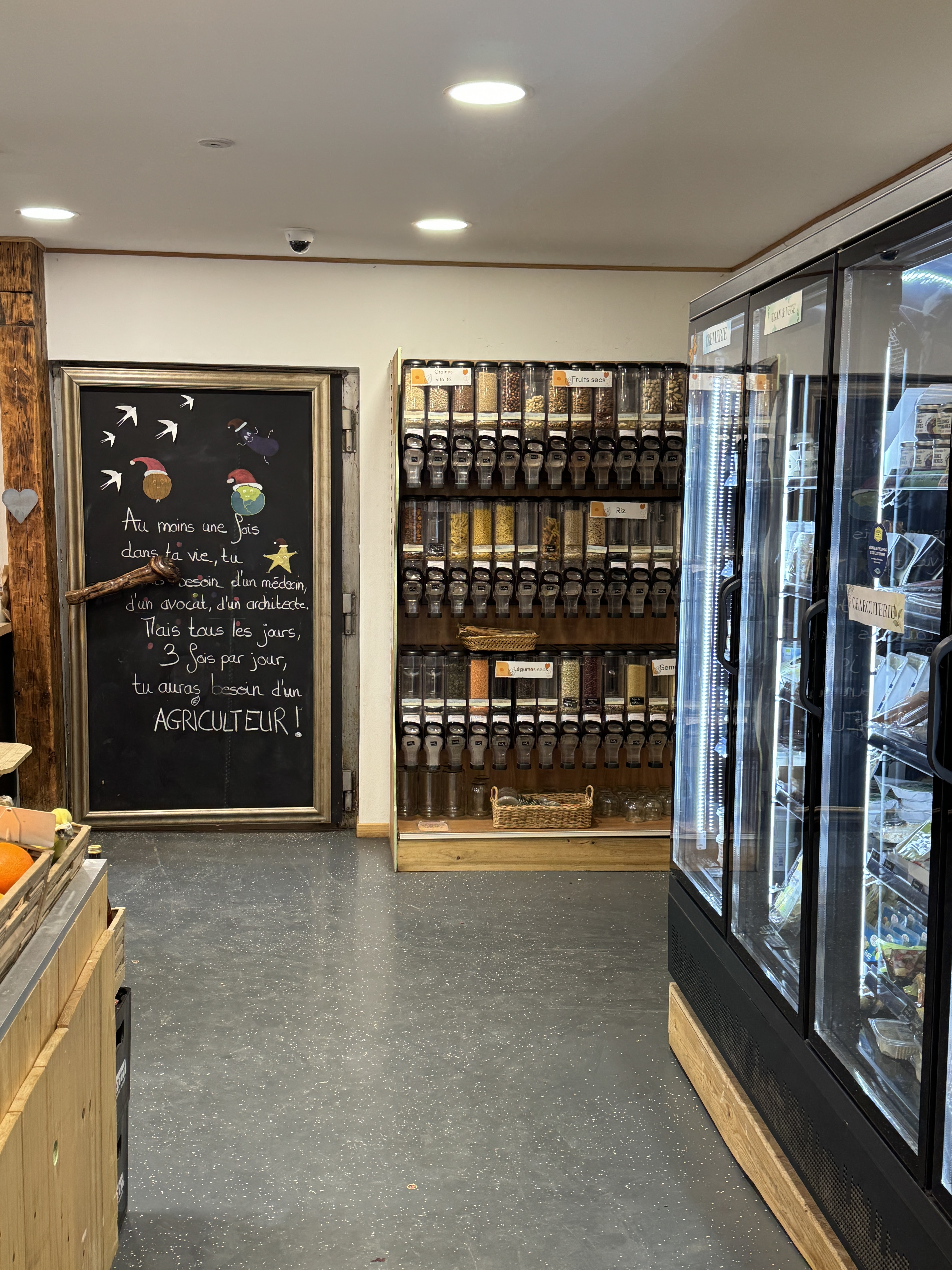 Testé mais non approuvé… des produits chers pas forcément locaux et pas encore assez mûrs pour les déguster. Côté vrac, les amandes et riz soufflé doivent être là depuis un moment…