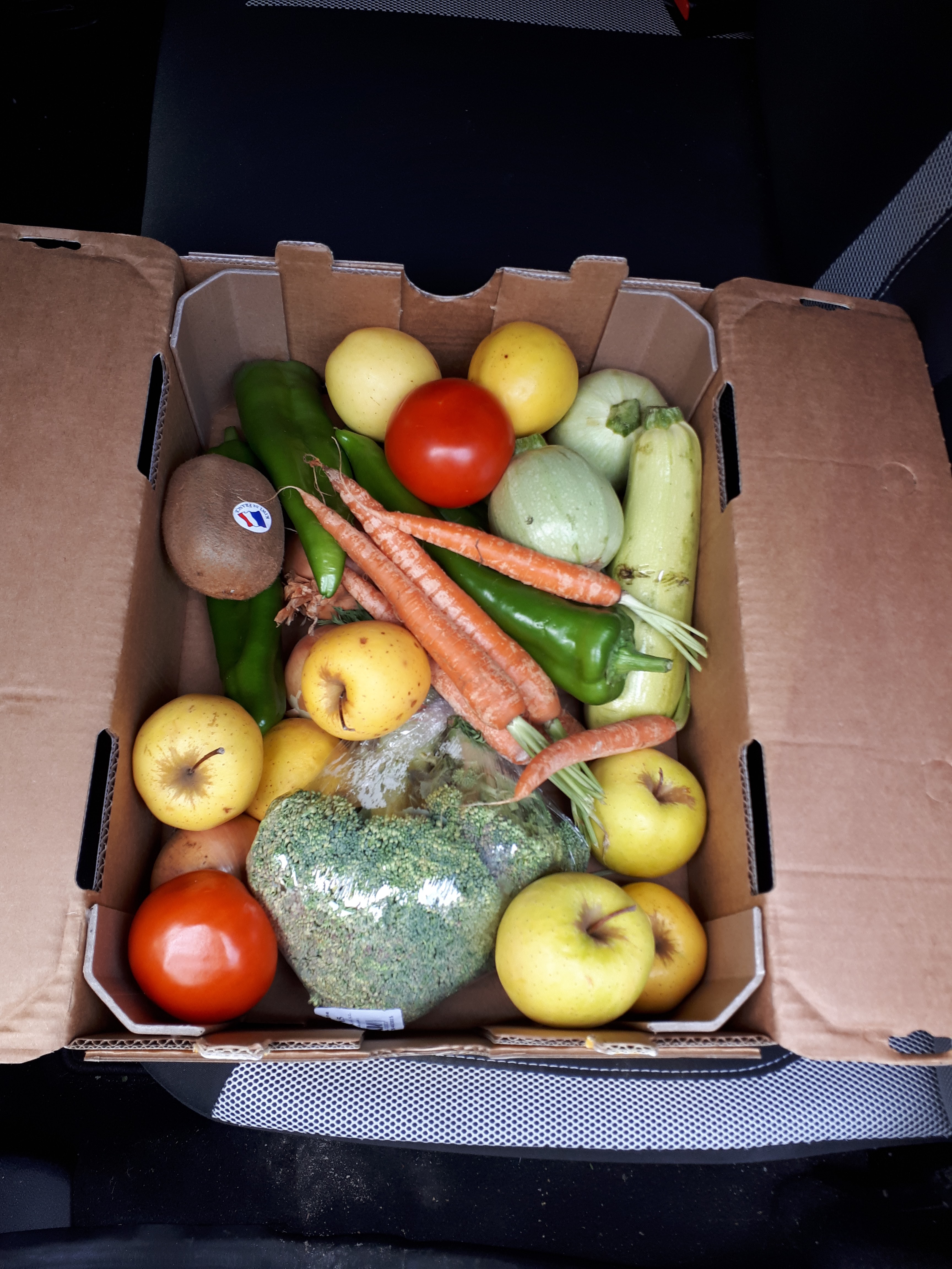 Des fruits légumes antigaspi censés être une valeur de 20€, j'ai eu 3 pommes, une mangue, une aubergine, 2oignons, une endive. Je ne recommande pas du tout