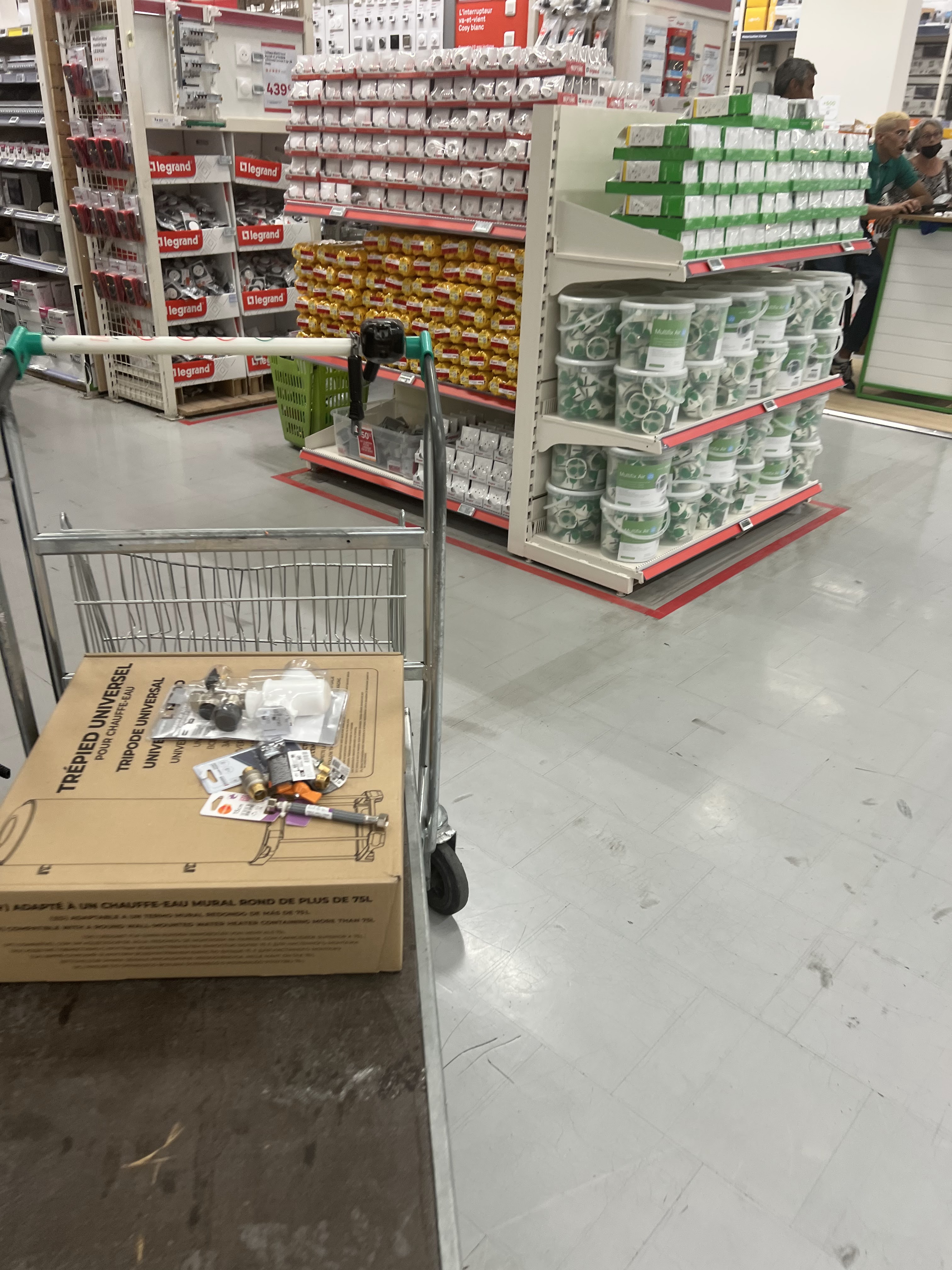 Pratique et utilisation de l’application Leroy merlin pour répéter les produits et identifier les rayons. Attention moins de stock qu’à la Valentine mais l’accès au magasin est plus facile.