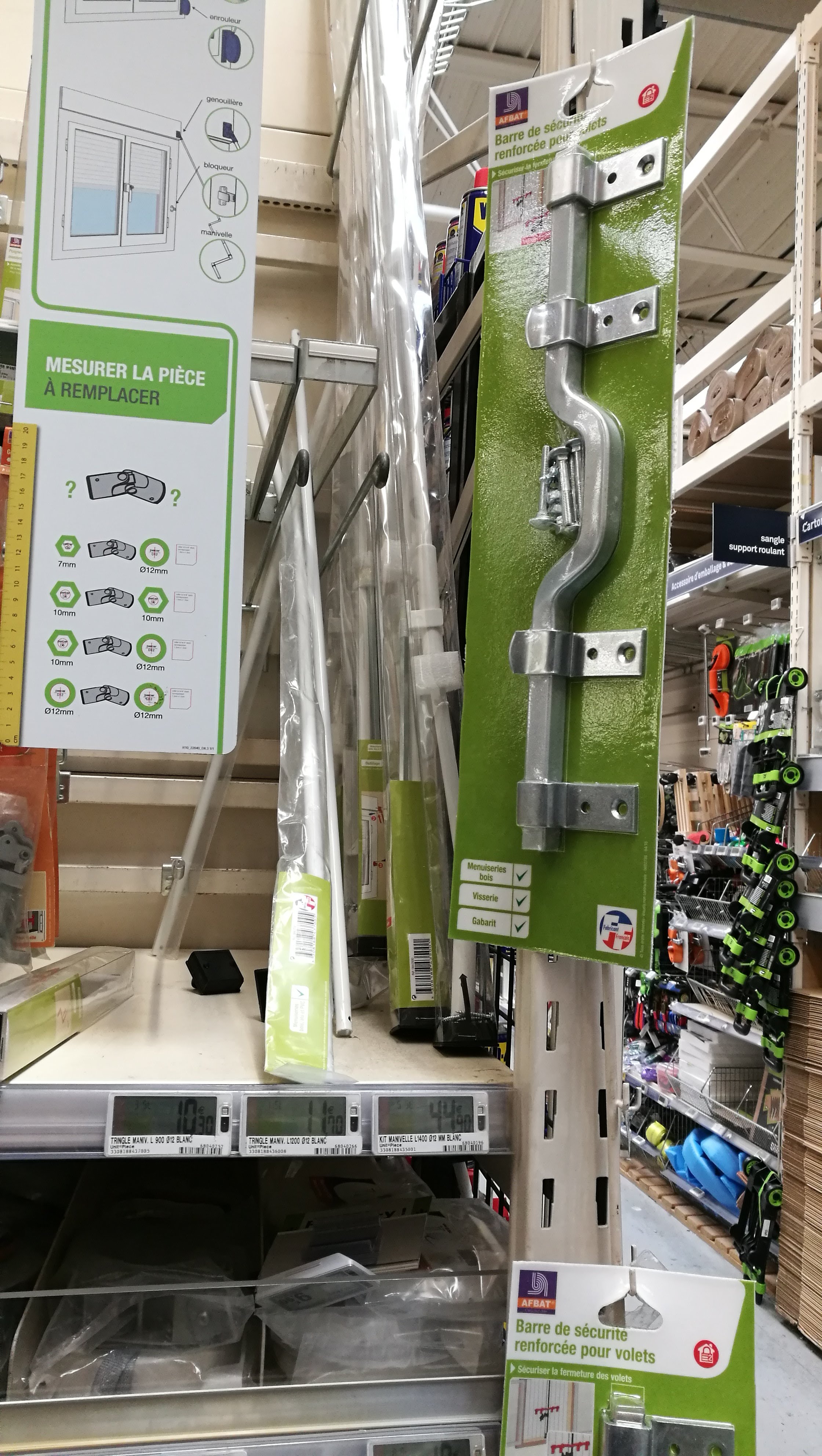 Je recherchais une poignée d'espagnolette comme il y a quelques années . Ce produit très classique n'existe plus en rayon . Il a fallu le commander . Cela va prendre 10 jours m'a dit le vendeur. Pour une enseigne comme la vôtre cela est carrément inadmissible.