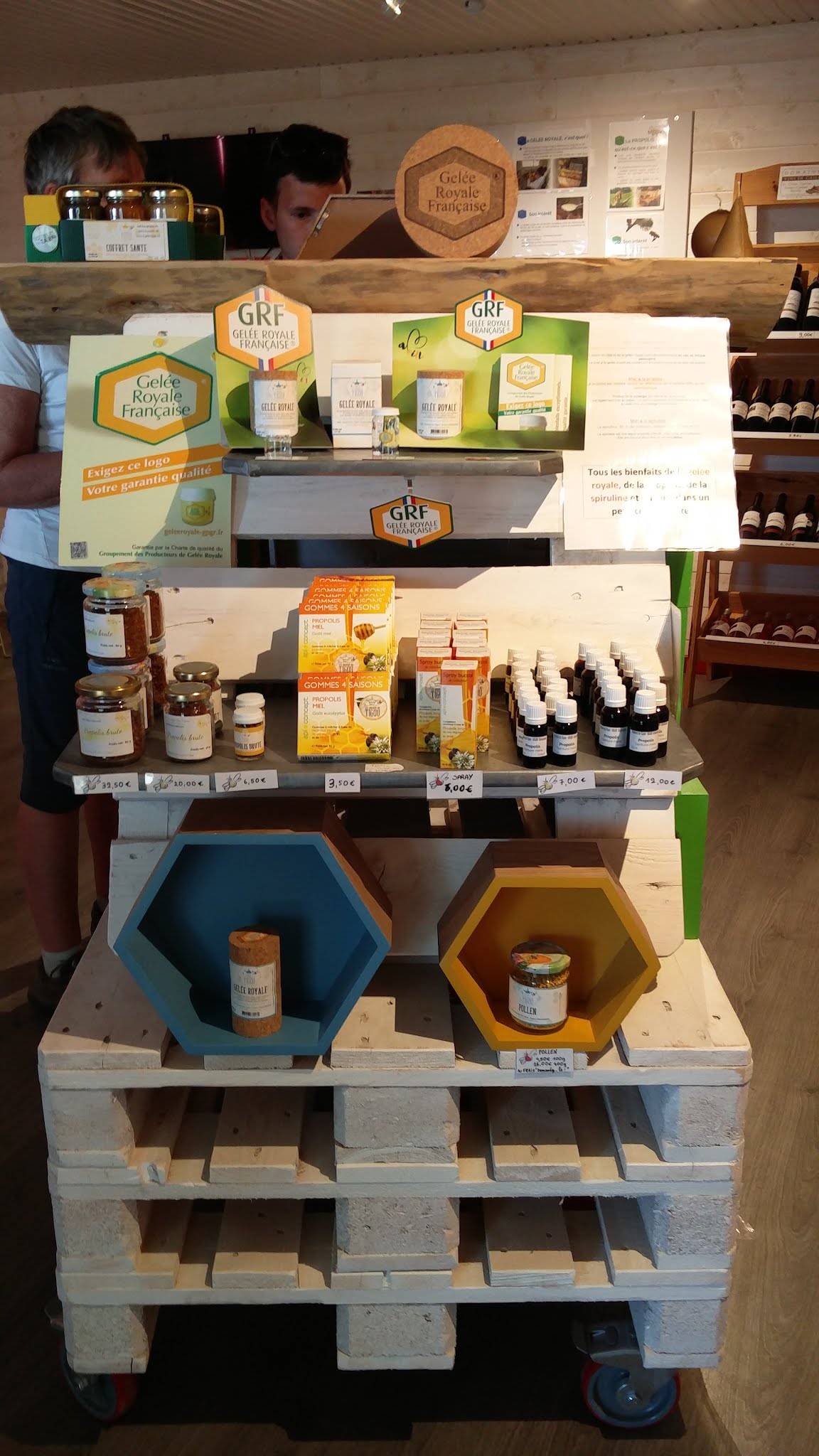 D'excellents miels de toutes sortes , un régal ! La gelée royale etc Ainsi que les spray buccaux et naseaux, naturels et efficaces, exit ceux de la pharmacie !