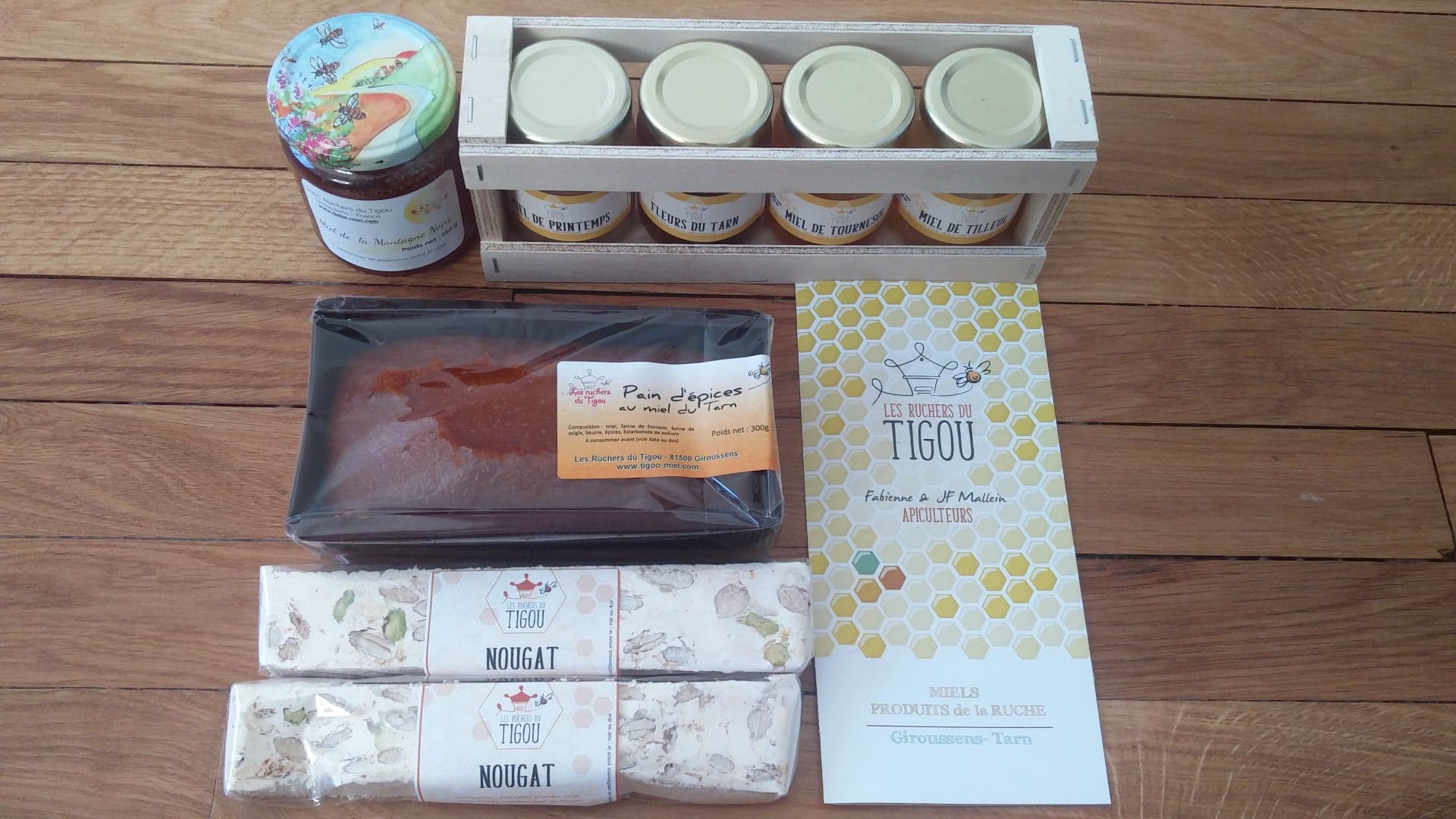 Du miel délicieux et frais ! Je peux vous recommander le Miel de la Montagne Noire, le pack de quatre pots de miel que j'ai partagé avec ma famille (Miel de Printemps, Tilleul, Tournesol et Tarn), du pain d'épices et du nougat. Leur pâte à tartiner aux noisettes et au chocolat a meilleur goût que le Nutella et leur pâte à tartiner au caramel est parfaite pour les crêpes. Ils proposent une large gamme de produits qui font de jolis cadeaux ! 😁