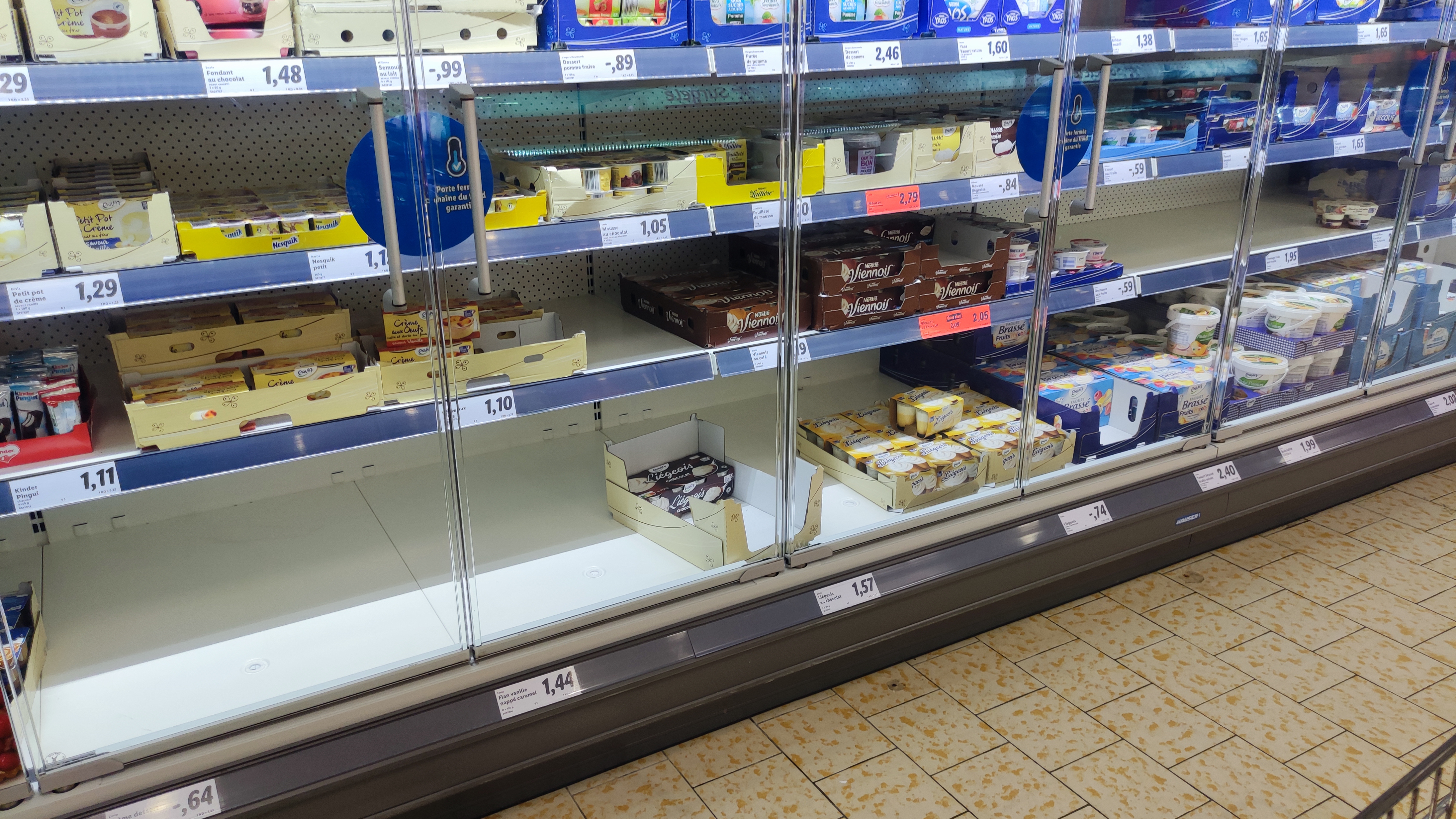Limite en periode de covid19. Mais surtout pourquoi remettre des articles en rayon avant un week end de 3 j ( nous en avons en reserve, mais j' en remet pas a 2h de la fermeture). En tant normal je dis rien mais une goutte d' eau de plus.