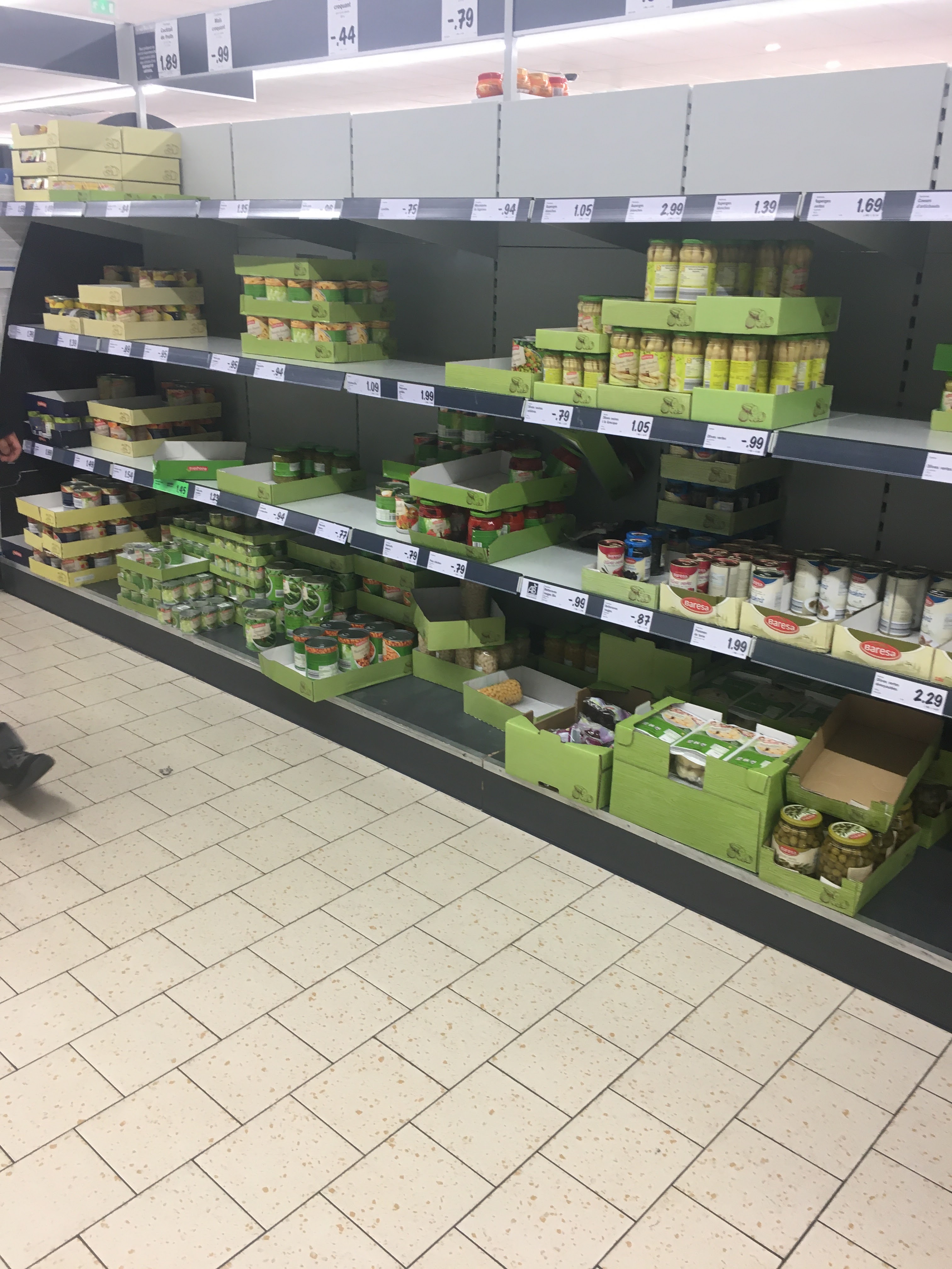 Vendredi soir... Rayons vides... Affluance importante. Peu de choix, rayon encombrés avec les rolls de cartons, nombreux prix absents, et plus aussi intéressants qu'à ses débuts, d'autres enseignes étant moins chères sur les produits du quotidien. Heureusement les hôtesses de caisse sont toujours souriantes, ce qui remonte la note.
