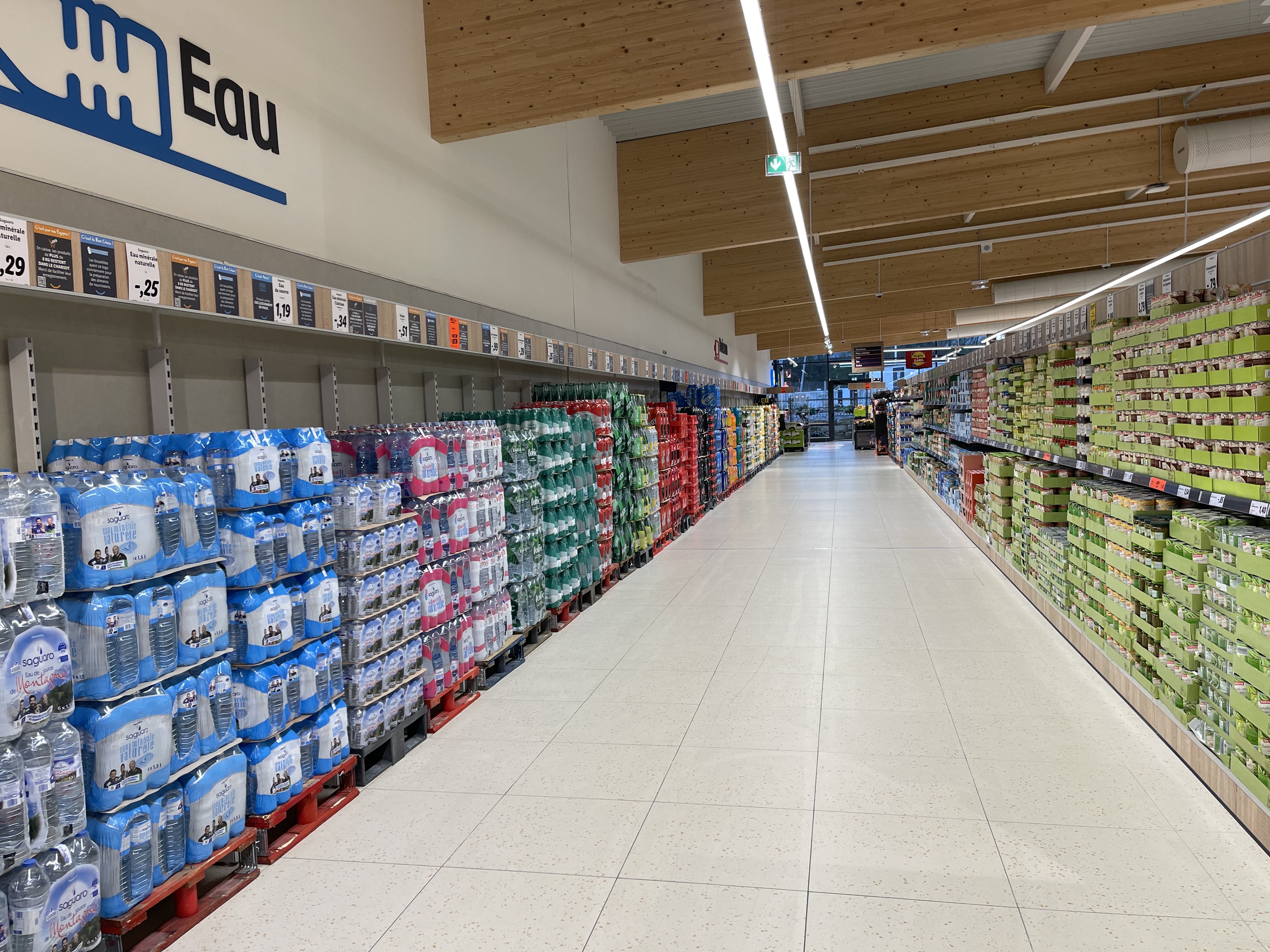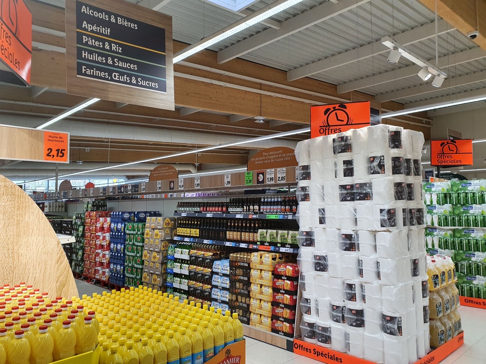 Grand Lidl bien approvisionné.