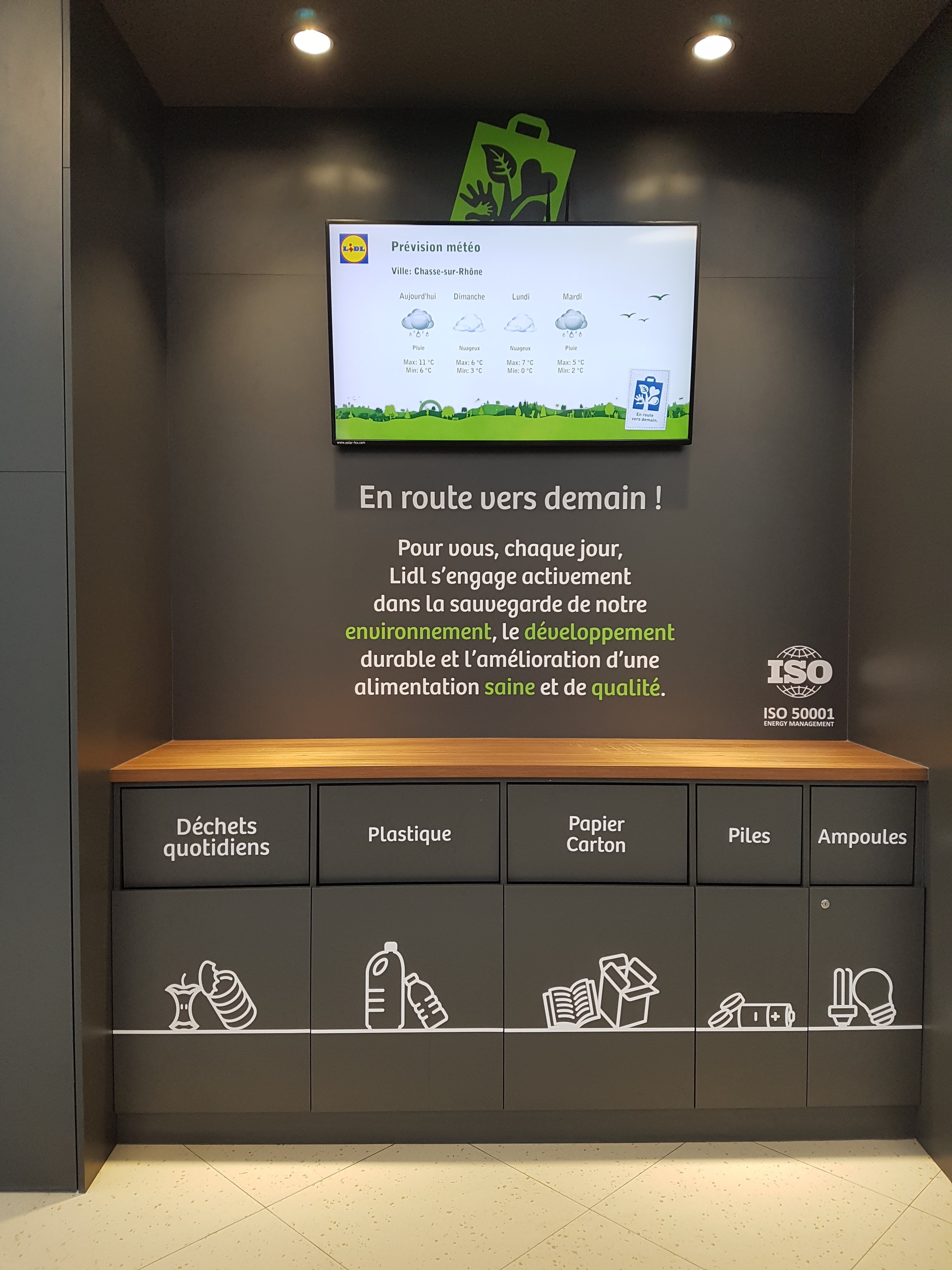 Un très beau magasin très bien place à côté de la zone de commerce de chasse sur Rhône avec un parking assez grand et avec des recharges pour voiture électrique c est moderne et en plus gratuit l intérieur du magasin est très spacieux de beaux légumes beaucoup de choix et des produits pas chers le magasin Géant Casino à côté qui reste cher n a qu à bien se tenir bravo à eux et un personnel très souriant et aimable et on attends pas aux caisses et il y a beaucoup de produits à moins d un euro j avais le caddy plein et pour seulement 150 euros merci à toute l equipe