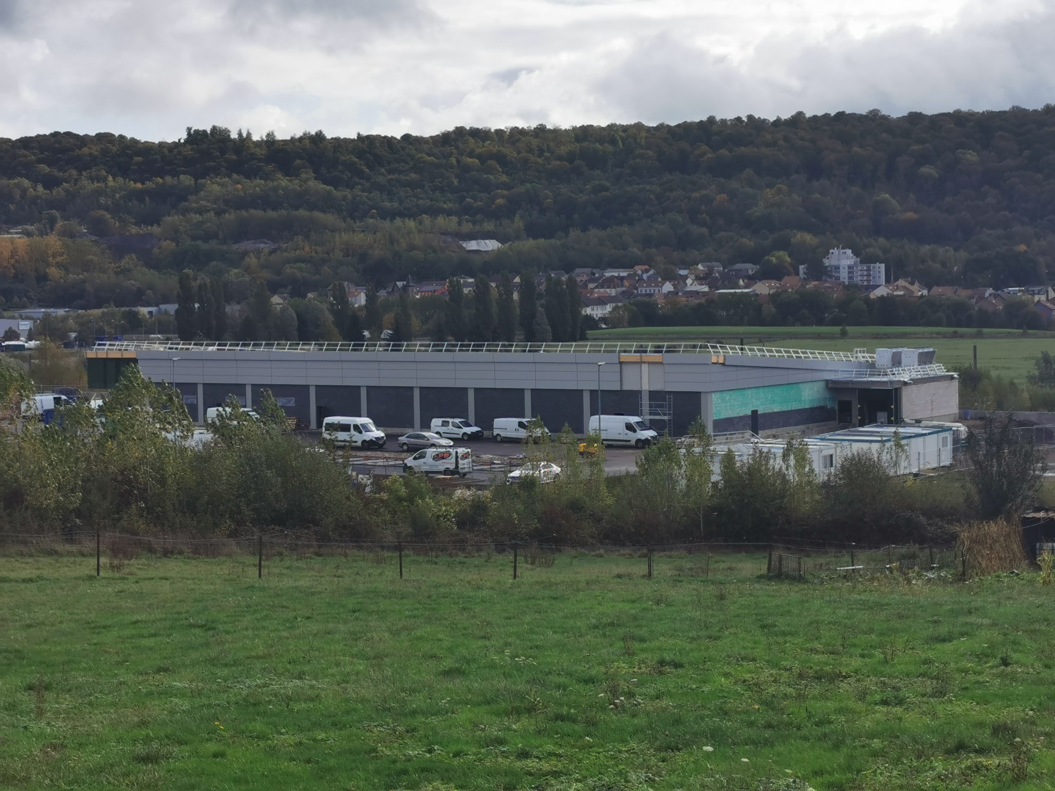 Un lidl de la nouvelle génération avec un très grand parking en France très proche de la frontière Belge