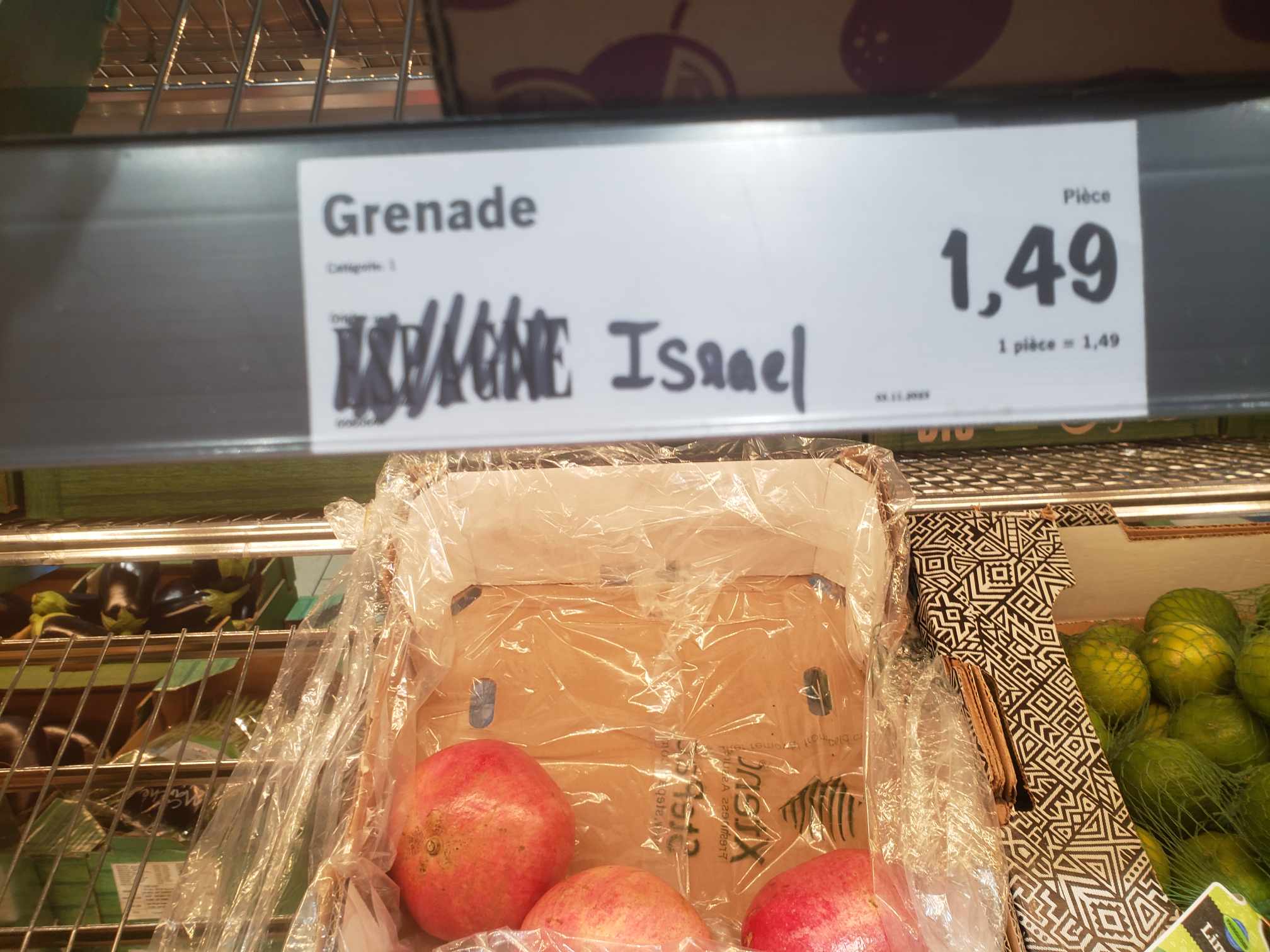 J'ai récemment visité le Lidl de Sarrebourg et j'ai remarqué une incohérence dans l'étiquetage des produits. J'ai vu des grenades avec une étiquette indiquant Origine Espagne, cependant, le bac contenant les grenades était clairement étiqueté Origine Israël. Cette divergence dans l'information d'origine des produits est préoccupante et pourrait constituer une pratique commerciale déloyale selon l'article L. 121-1 du Code de la consommation. Je précise qu'une des employés du magasin à immédiatement rectifié l'erreur. Cependant, j'espère que cette question sera examinée et résolue pour assurer à l'avenir la transparence dans l'information fournie aux clients. La confiance des consommateurs est essentielle, et je vous encourage à prendre des mesures pour éviter que cette situation se reproduise.