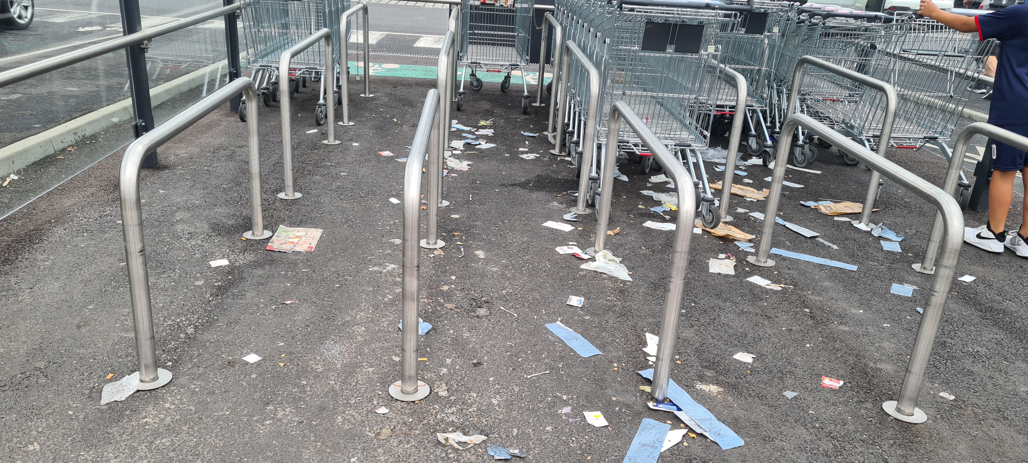 Parking très sale emplacement des caddies très sale jamais nettoyer les caddies sont sales pas de papier pour nettoyer les caddies à la placement du gel hydroalcoolique ecoeurant