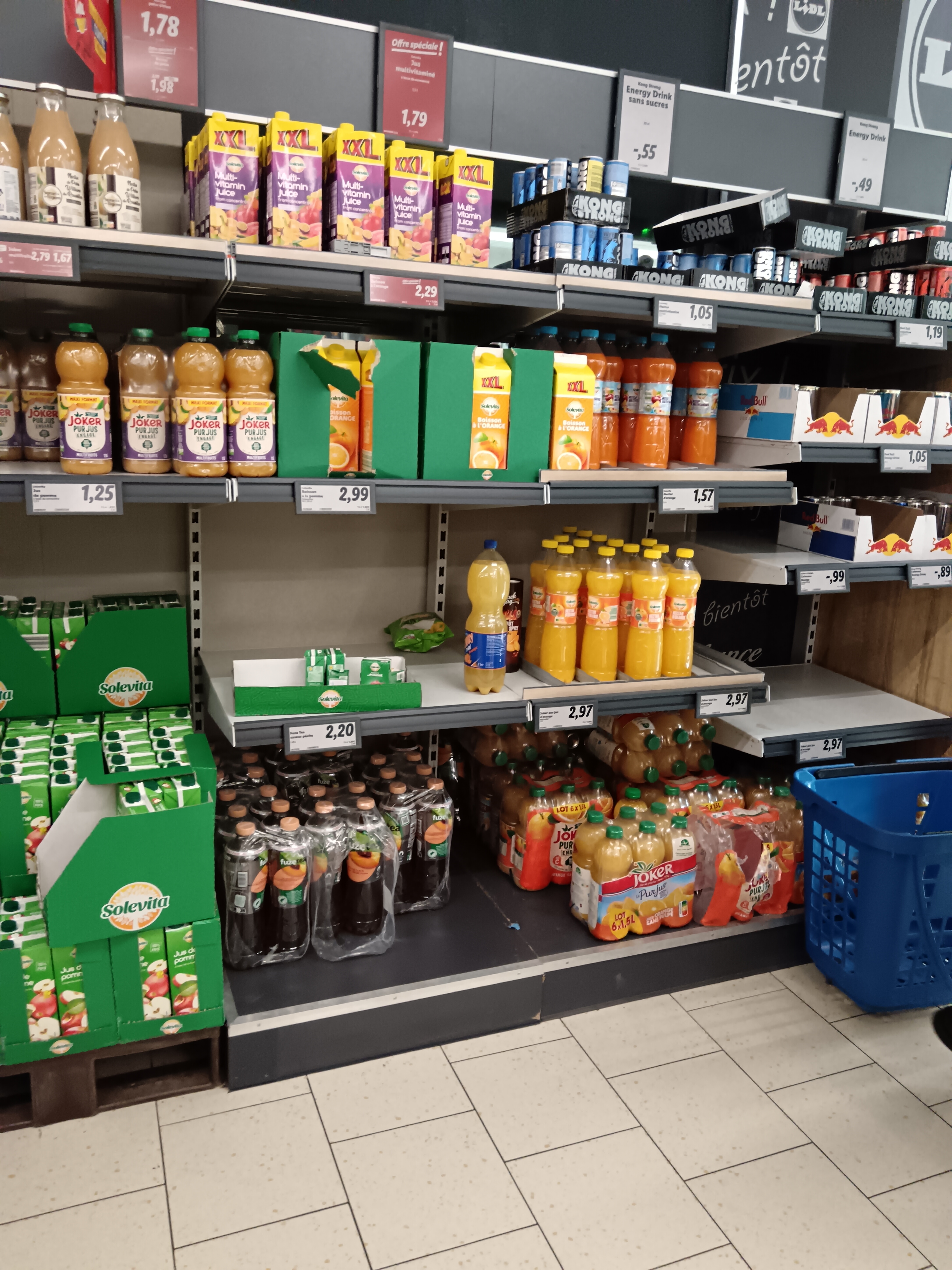 je suis allez au Lidl ce samedi à 16h et une fois de plus il démonté tout les gondoles 😕 je sais très bien que tout soit prêt pour le lundi 8h mais le magasin ferme quand même à 20h30