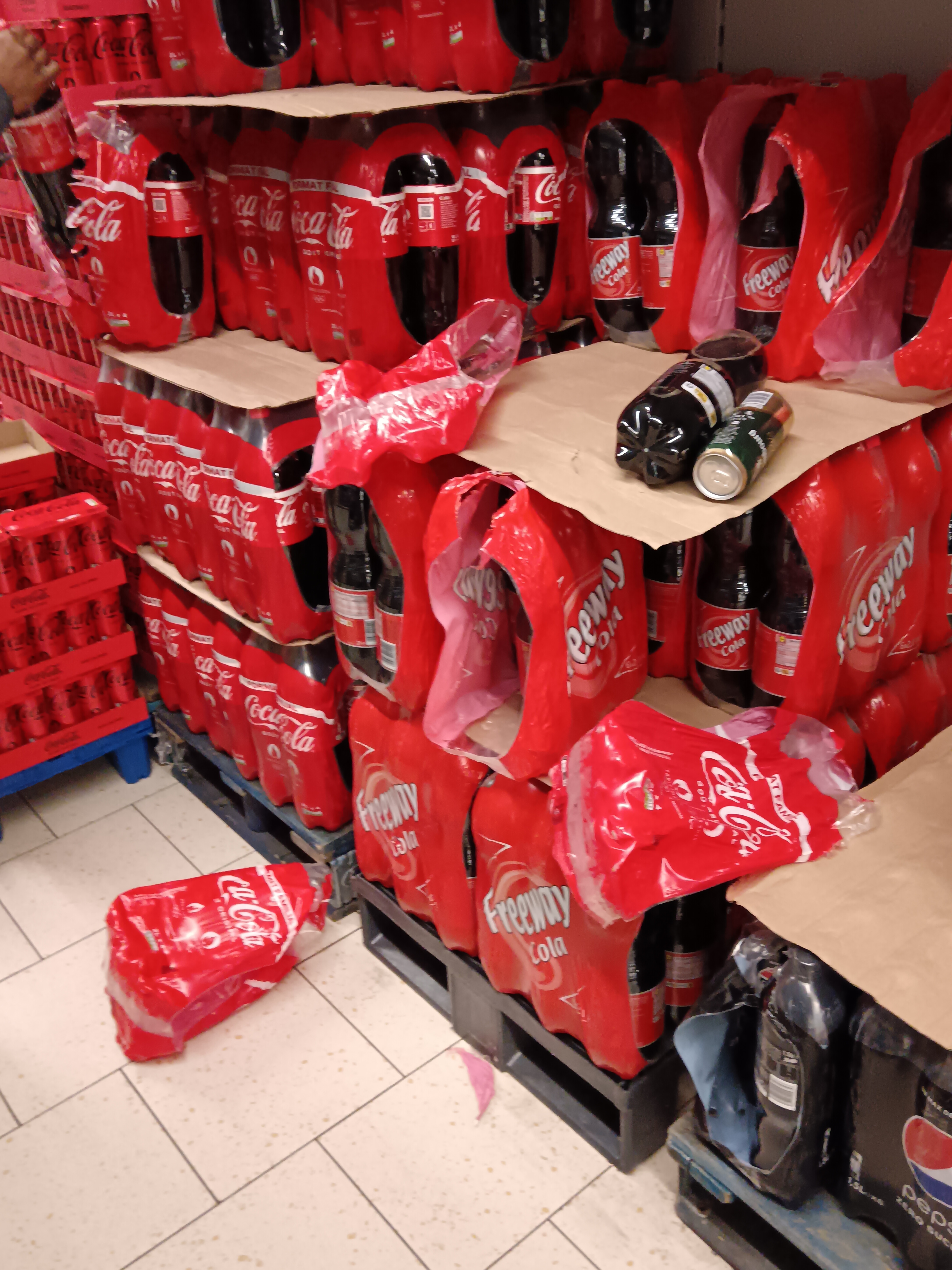 Bourrés qui font tomber des bouteilles d’alcool en caisse, résultat ? Clients en caisse trempés d’alcool. Top.