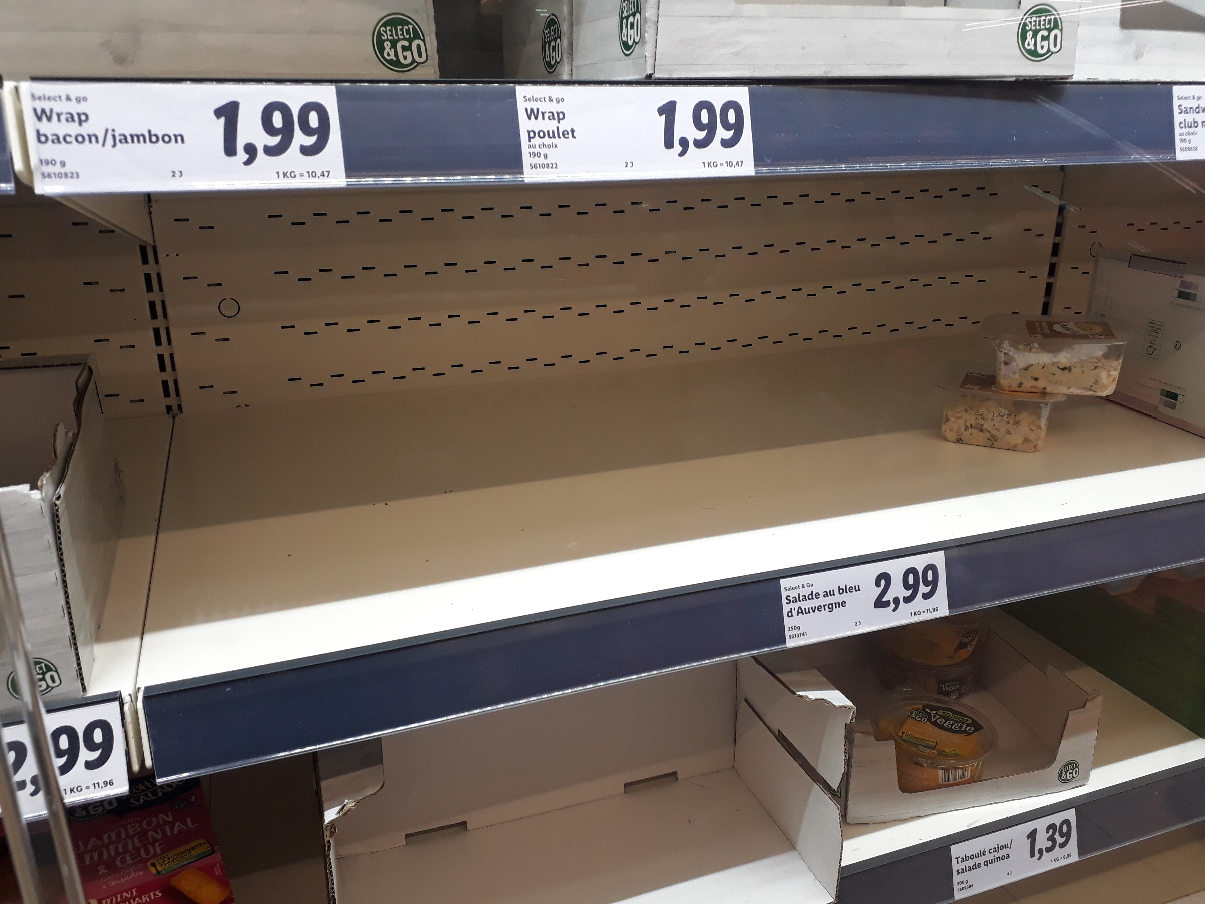 Pas de pain et pas de filtres à café beaucoup de rayons vides