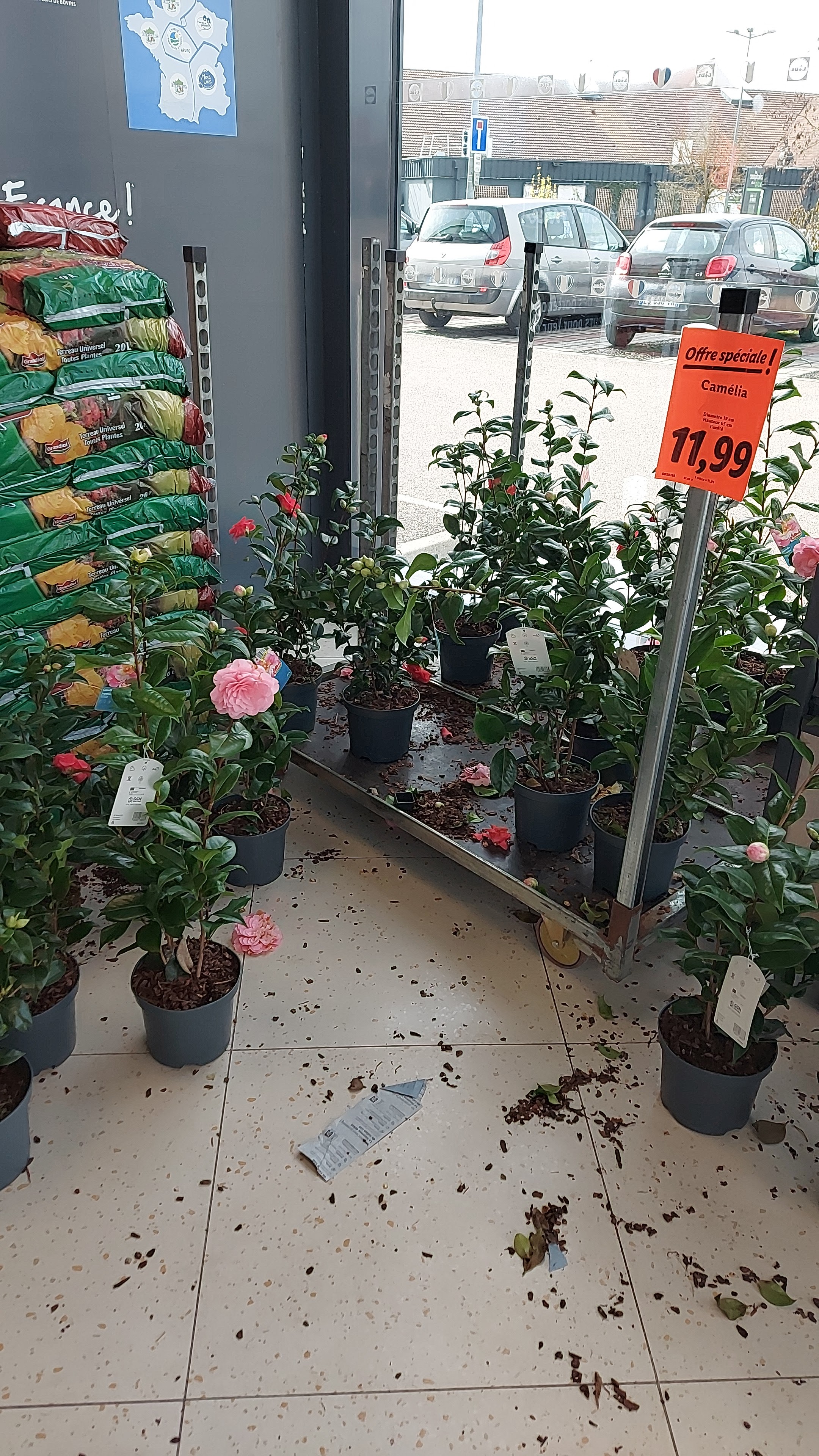 Magasin qui commence à faire fouillis, difficile de circuler entre les rayons avec un caddy, trop de fleurs qui prennent de la place, alimentation trop dispersée