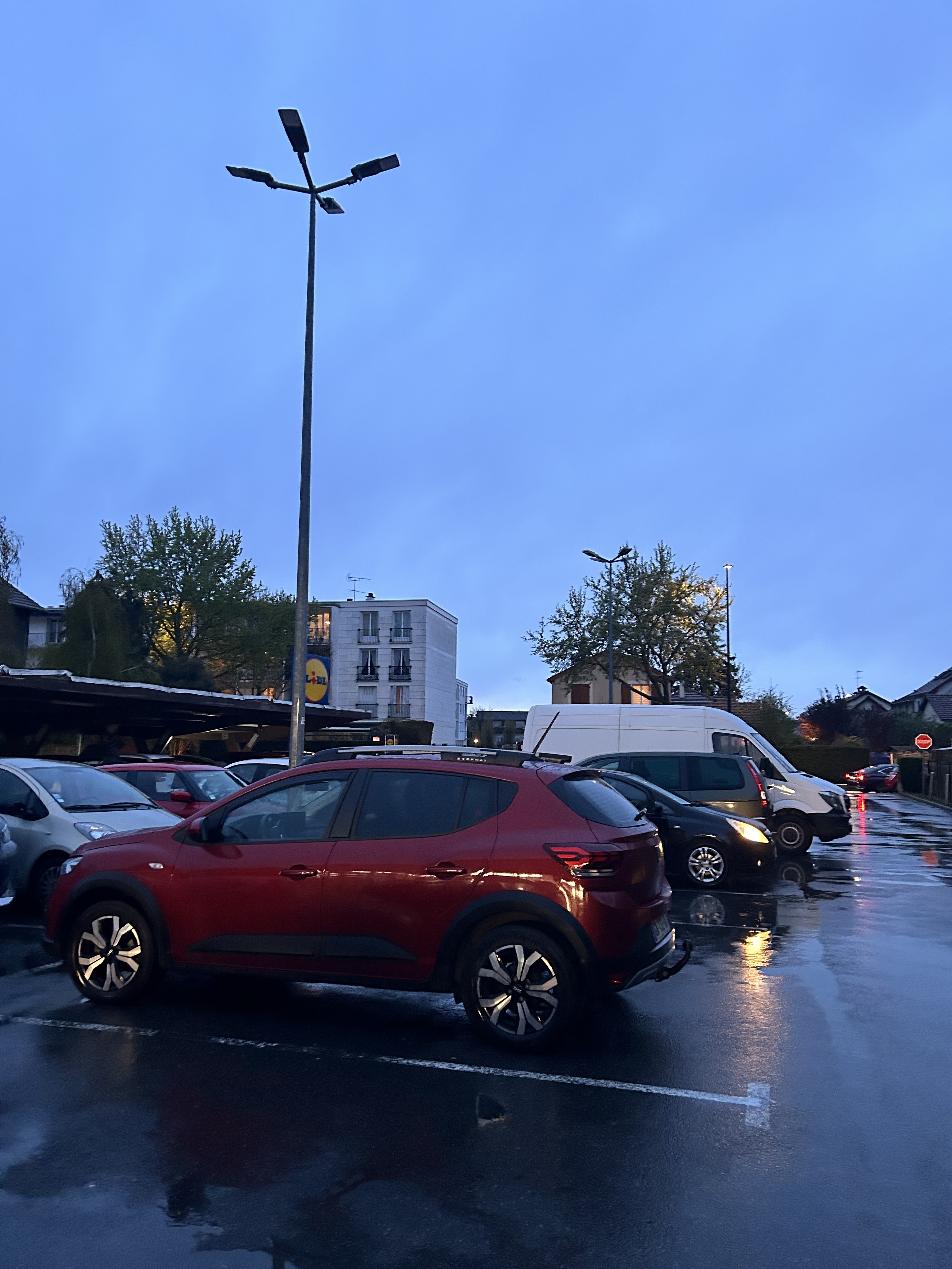 On peut pas se garer car les gens qui habitent autour de garent dans le parking.une catastrophe. Donc on fait demi et on va faire les courses autre pzrt