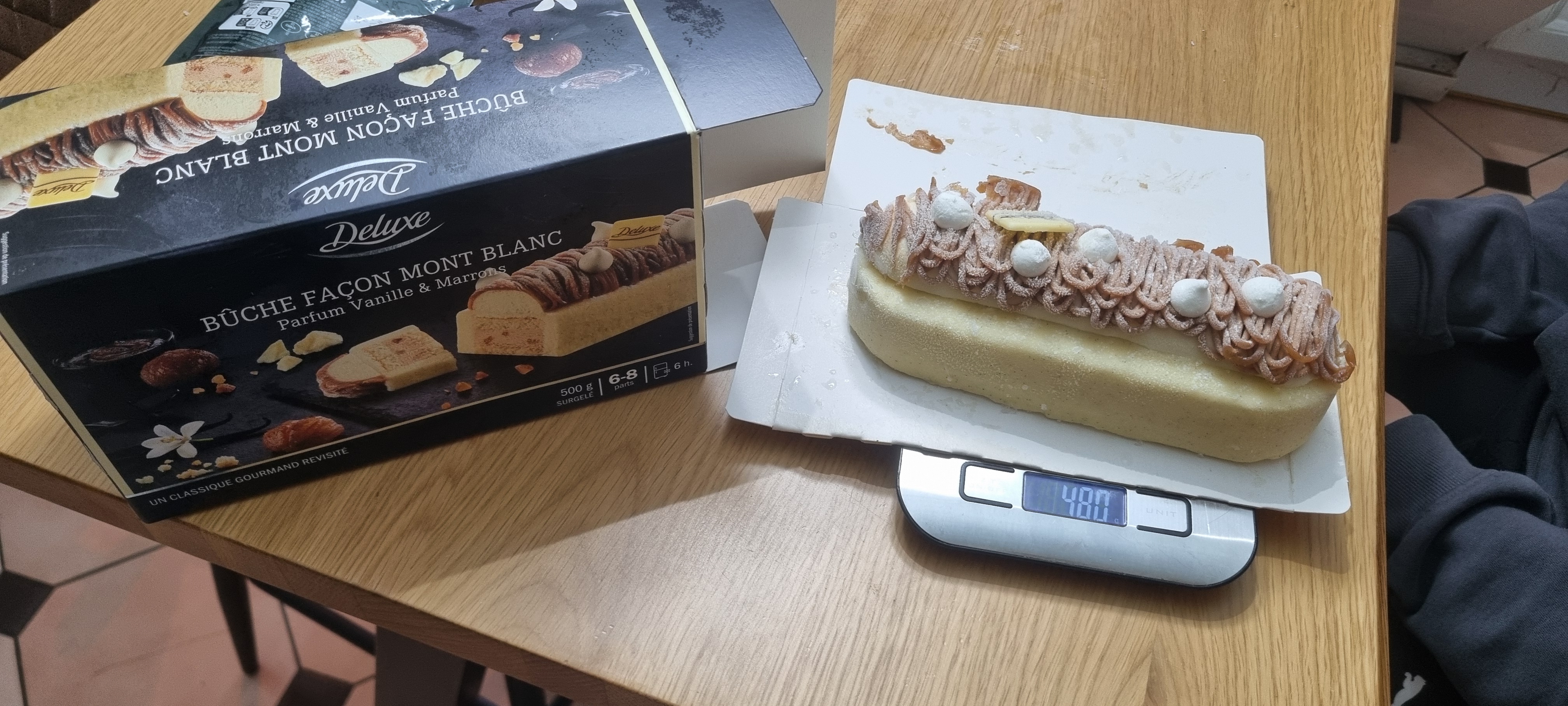 Du recel descroquerie ?buche vendue 500g et pesee a 480g. Emballage enorme avec plein d,air dedans Pensez a peser vos aliments Ca me met la rage de me faire escroquer de la sorte ce sera envoye a la dgccrf
