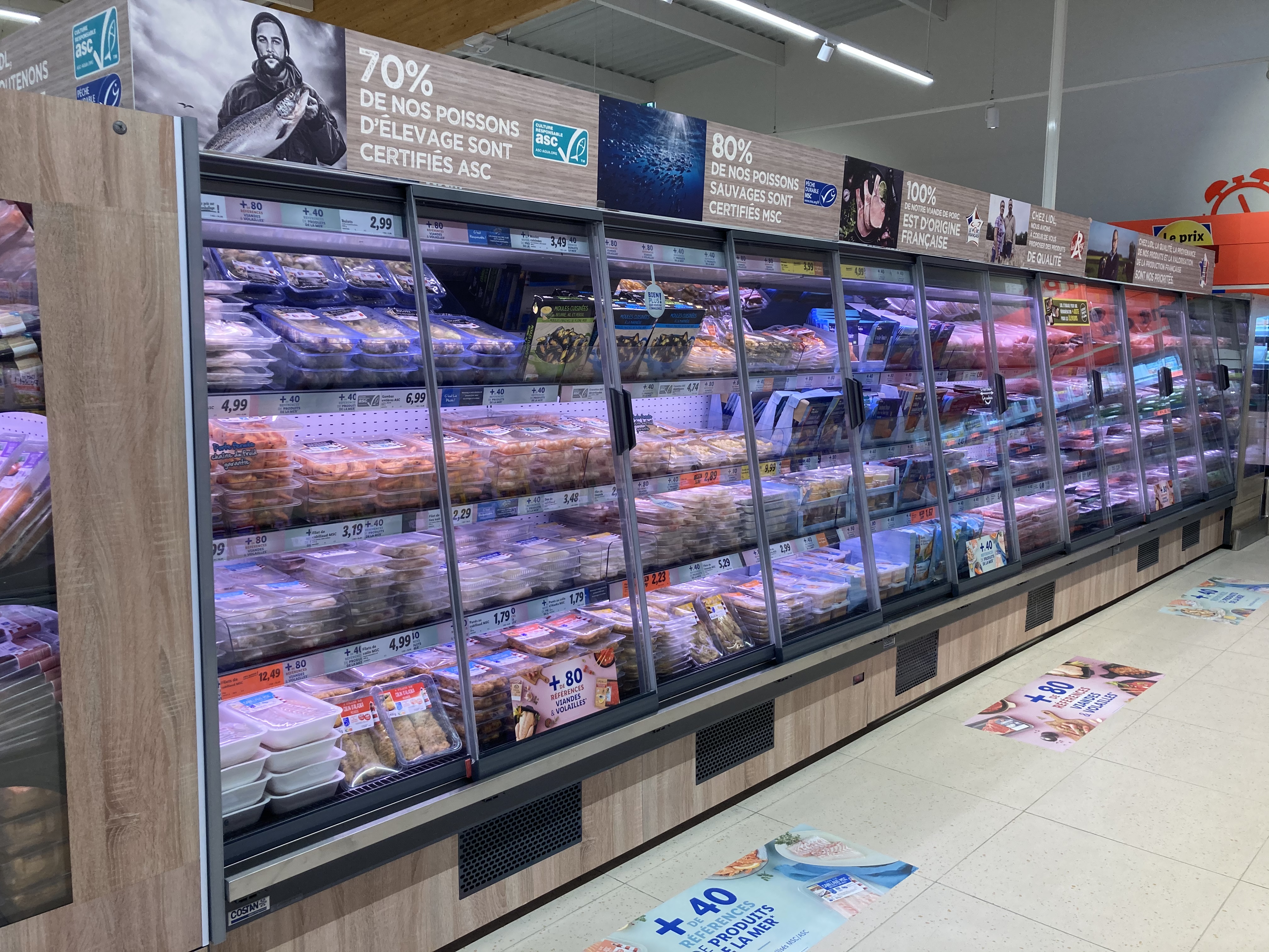 L'étiquetage laisse à désirer, Les frigos n'avaient pas de lumière alors je n'ai acheté ni viande ni poissons....