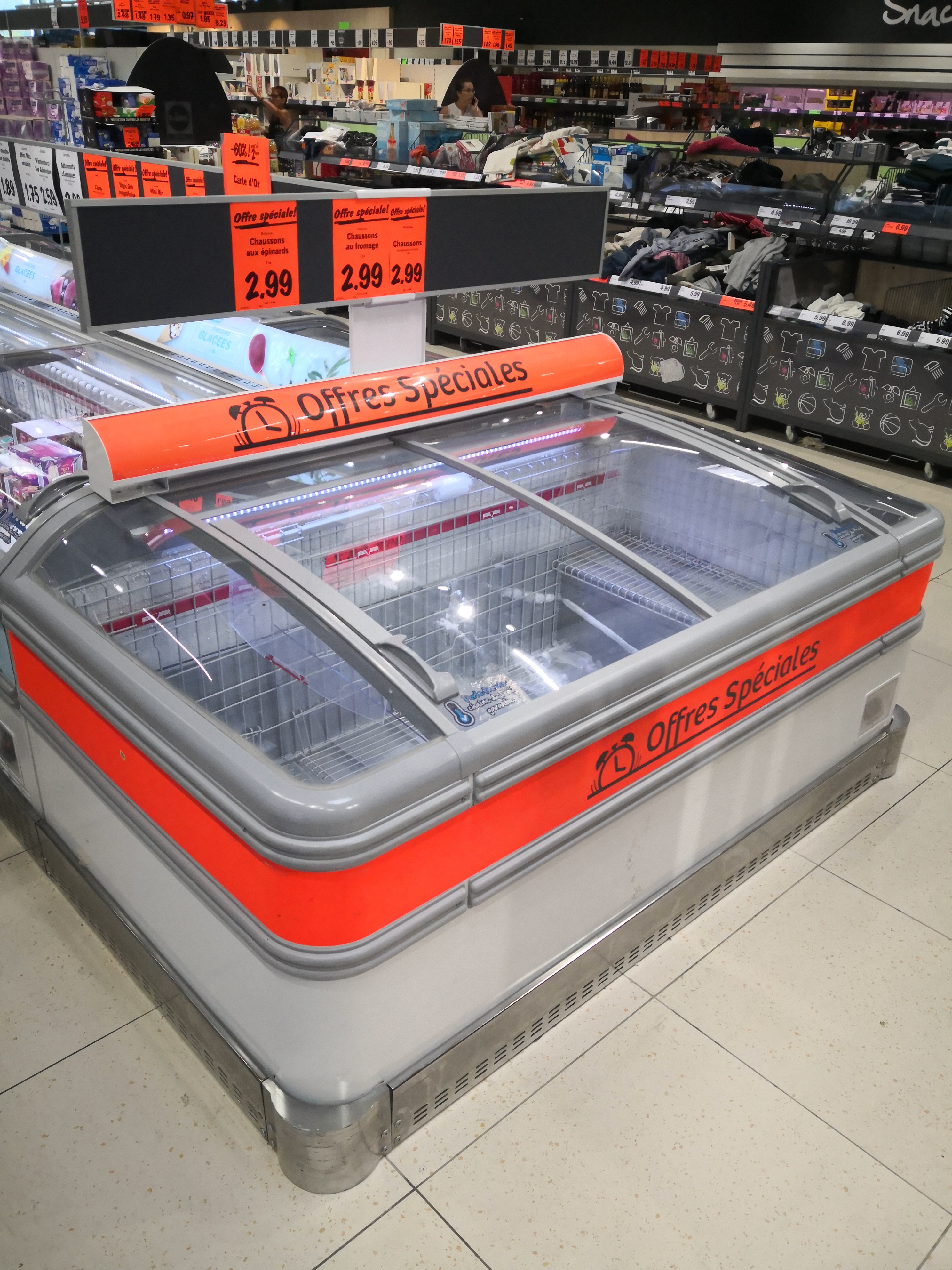 Beaucoup trop de monde, le magasin n'est pas énorme et les rayons non plus mais on dirait que les gens prennent un malin plaisir à venir faire leurs courses à 15! Mari, femme, leurs 3 gosses, ça hurle dans tous les rayons, les gens mettent un bordel monstre partout où il passent, bref, le magasin a également visiblement du mal à suivre car beaucoup de rayons peu fournis, des cartons vides et j'en passe. 7 caisses, seulement 3 ouvertes, noires de monde, bref, j'ai vécu l'enfer sur terre.