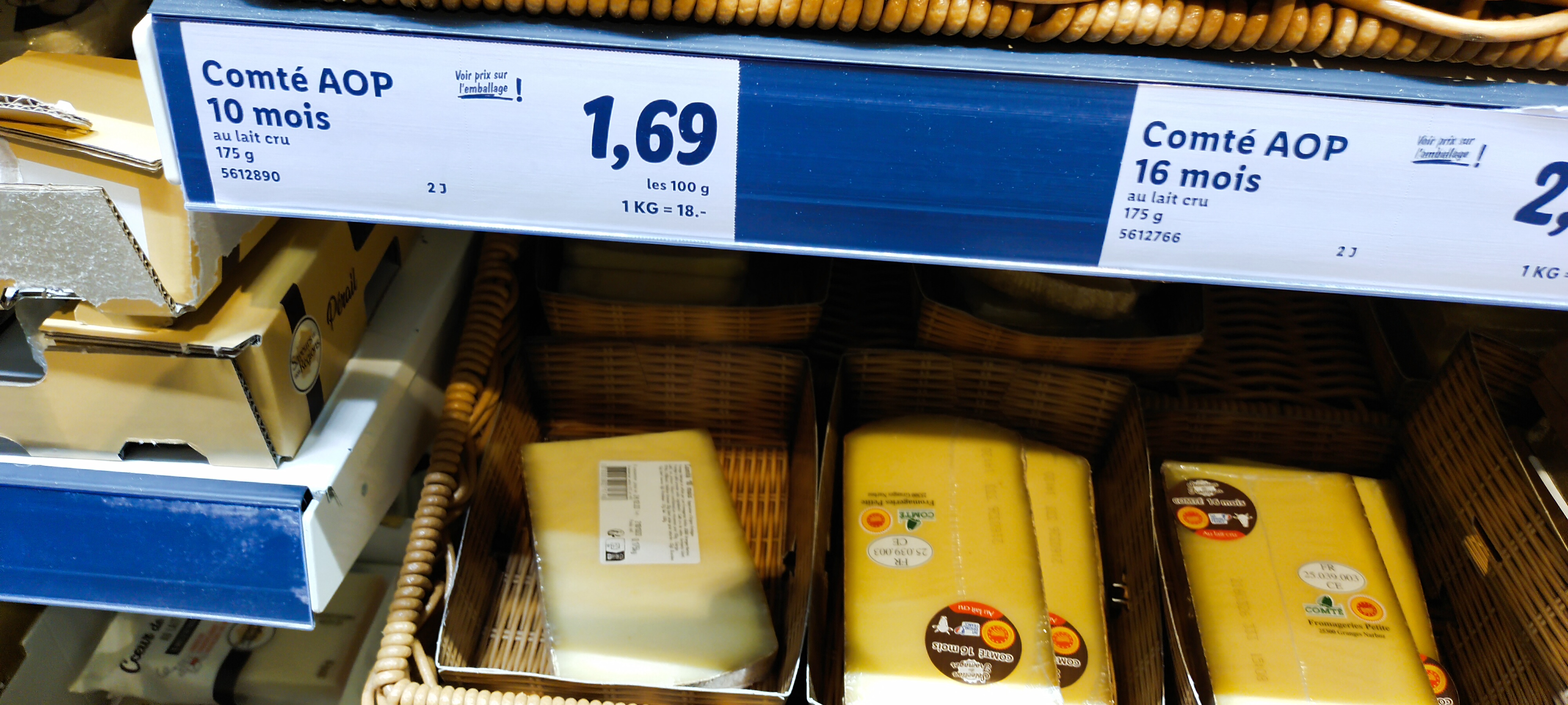 Magasin de Cornebarrieu très bien tenu avec un personnel très aimable. Pour autant,comme dans beaucoup de magasins de la marque, il y a un défaut récurrent d'affichage des prix qui trompe les clients. Voici l'exemple en photos d'une part de Comté. Il est indiqué que le prix figure sur le produit, or il n'en est rien. Le prix affiché à 1,69 les 100gr laisse croire que c'est le prix du produit. Mais la part pèse 175gr. Pour en connaître le prix faut appliquer la règle de trois suivante : 1,69X175:100= 2,95€. Or en caisse le prix est de 3,15€. Enfin le prix au kg affiché est de 18€ donc ça ne correspond pas non plus avec le prix de la part de 100gr, mais ça correspond bien au prix réellement payé en caisse. Pour les maths Lidl n'est pas le meilleur parmi les moins chers et ce n'est pas le vrai prix des bonnes choses. .