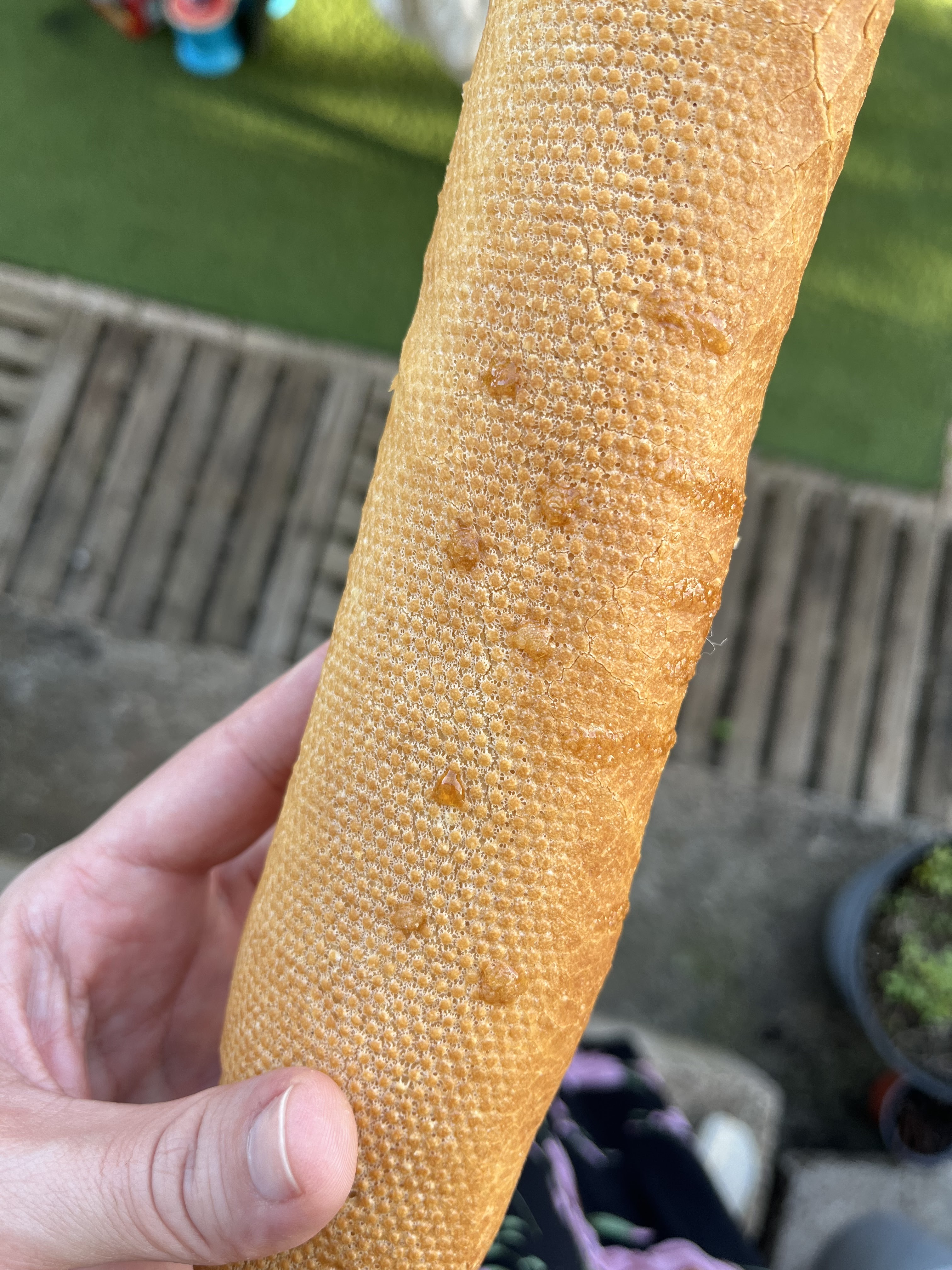 Toujours beaucoup d’attente en caisse, de plus j’ai acheté 2 baguettes, l’une avec du sucre fondu collé dessus et l’autre avec de grosses traces noires, manque d’hygiène