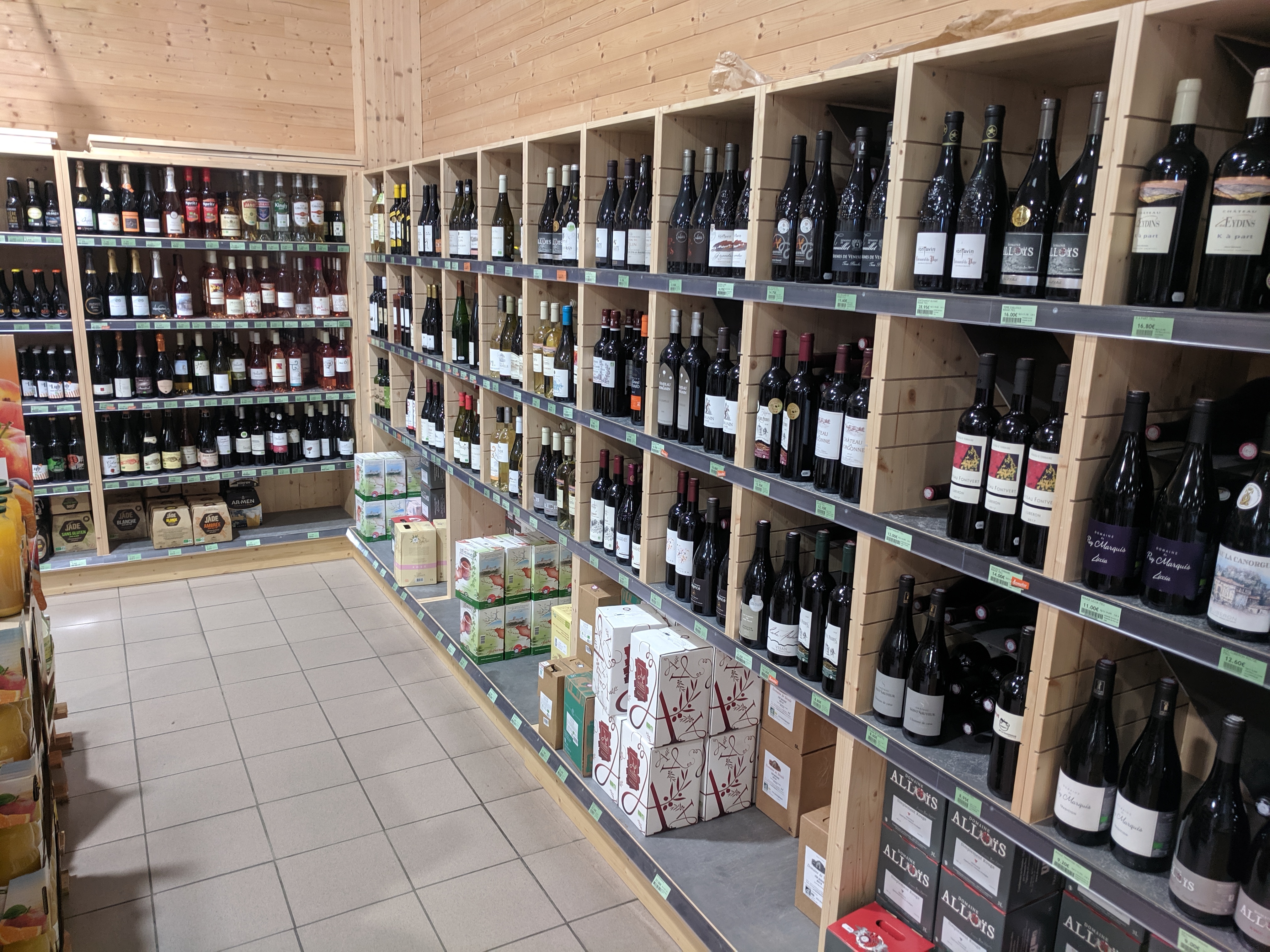400 m2 de produits bio avec en plus des rayons courants un espace légumes séparé pour assurer une meilleure tenue, un beau choix de vins, viandes, poissons, fromages et pains