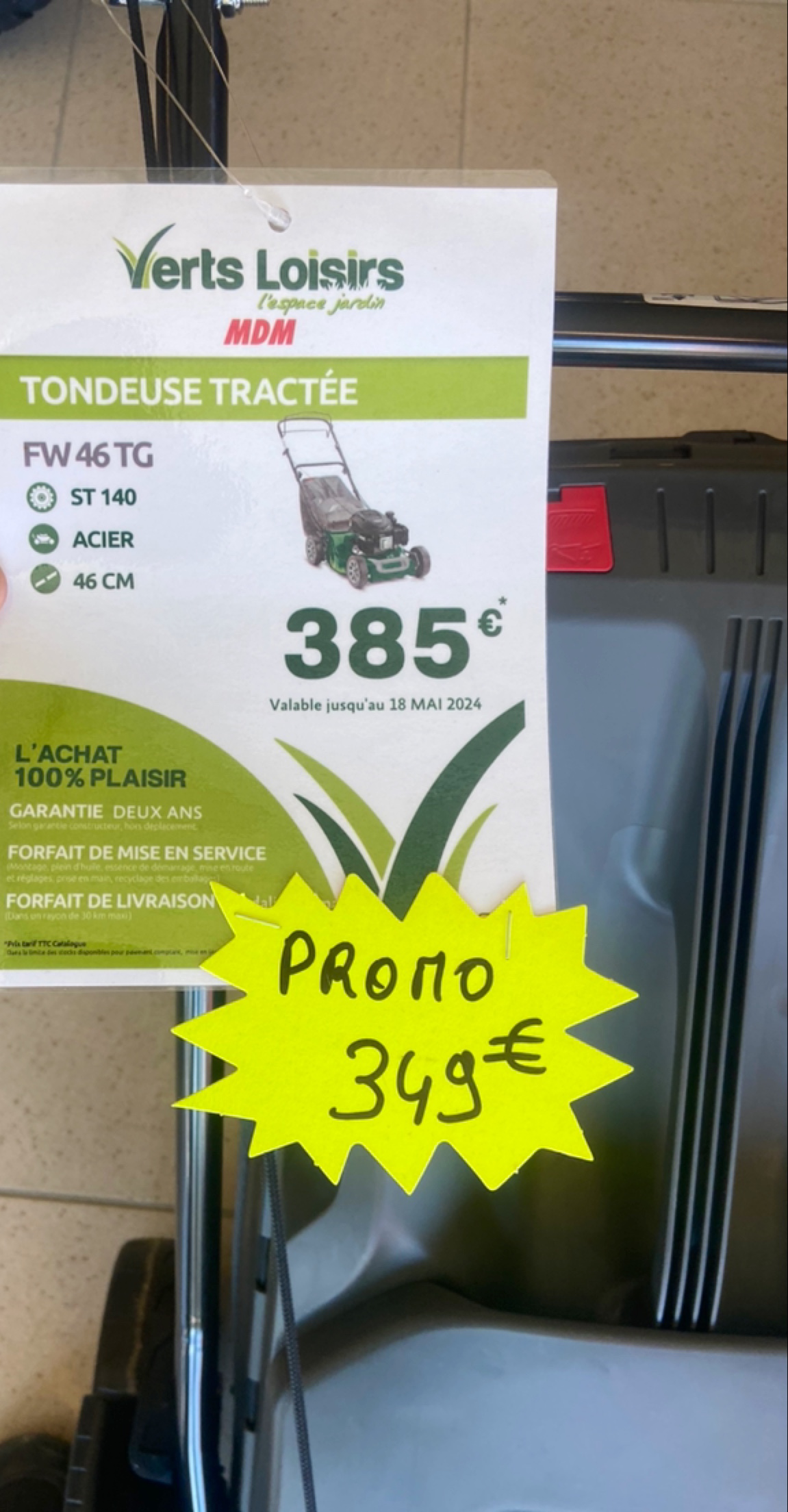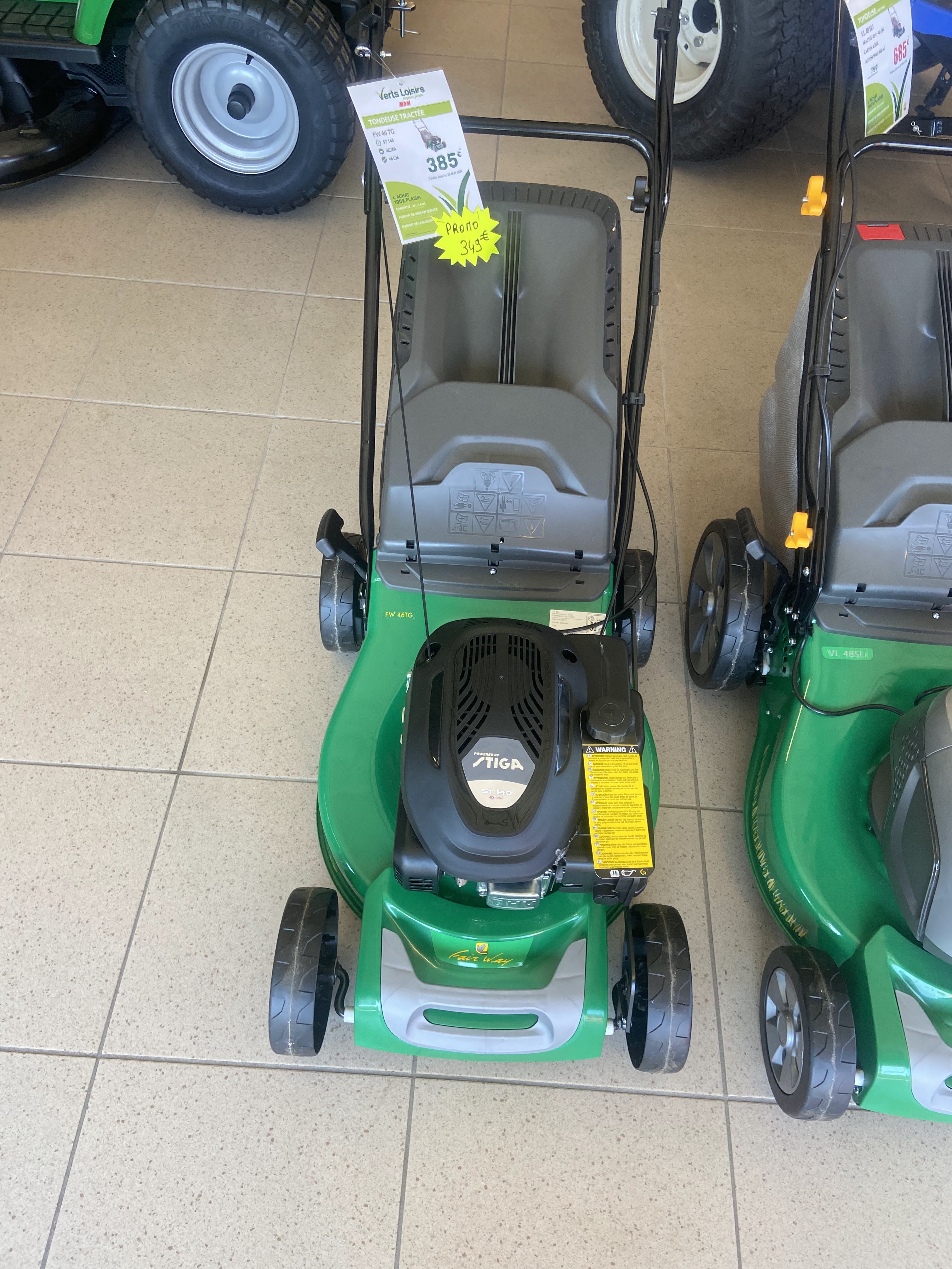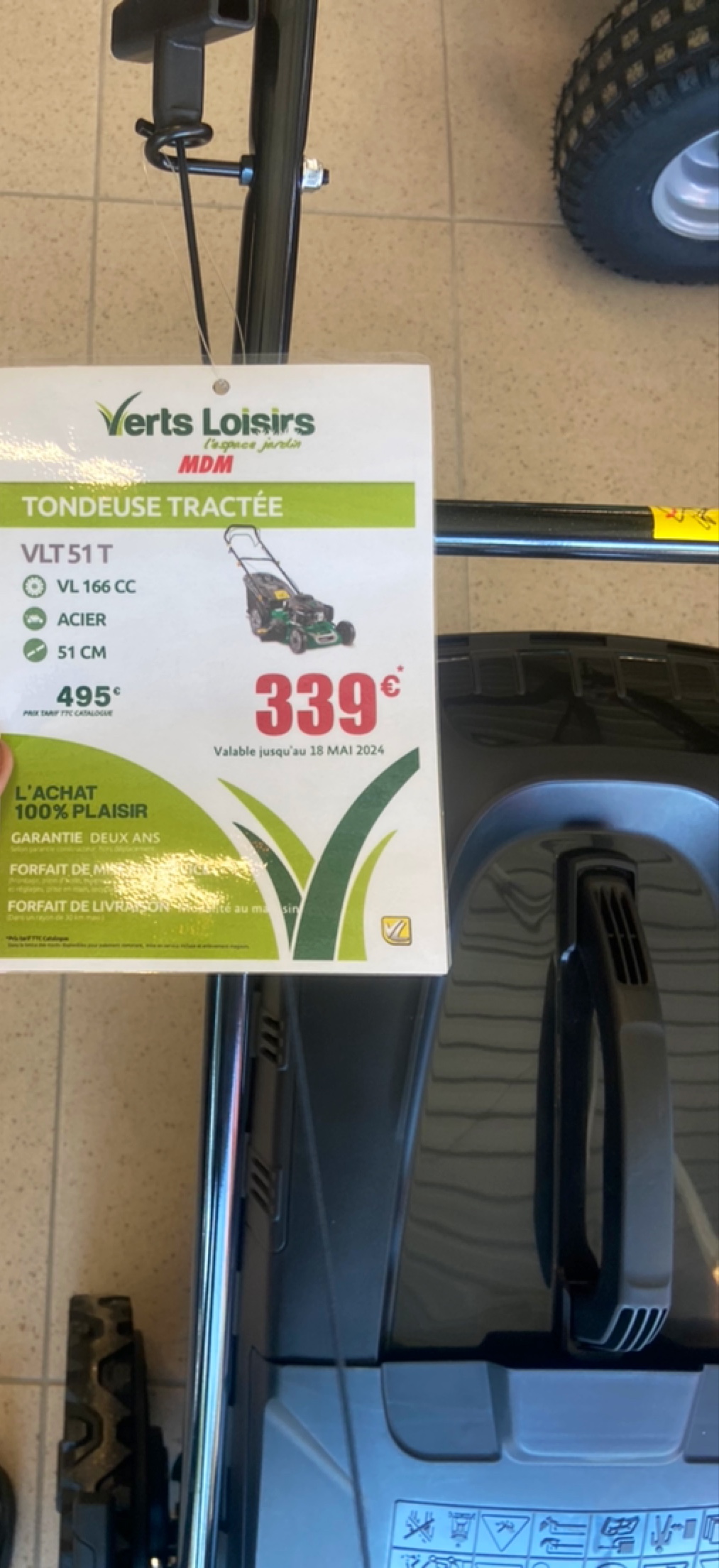 Achat d’un tondeuse à gazon tractée vert loisirs VLT51T 166CC à 339€. Très bon conseil de la part des vendeurs. Je recommande ce magasin qui est spécialisé dans les tondeuses.
