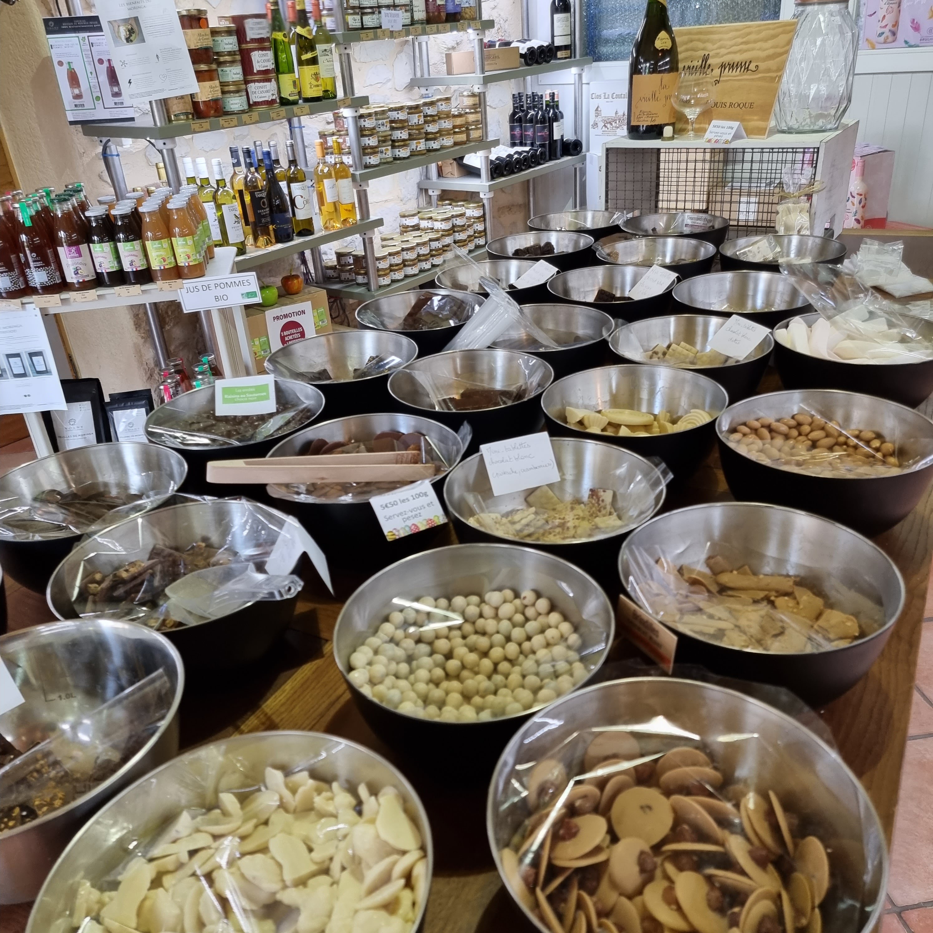 Un large choix de produit locaux a base de pruneaux (boissons, alcools, sucreries mignardises et chocolats tous aussi bons les uns que les autres !