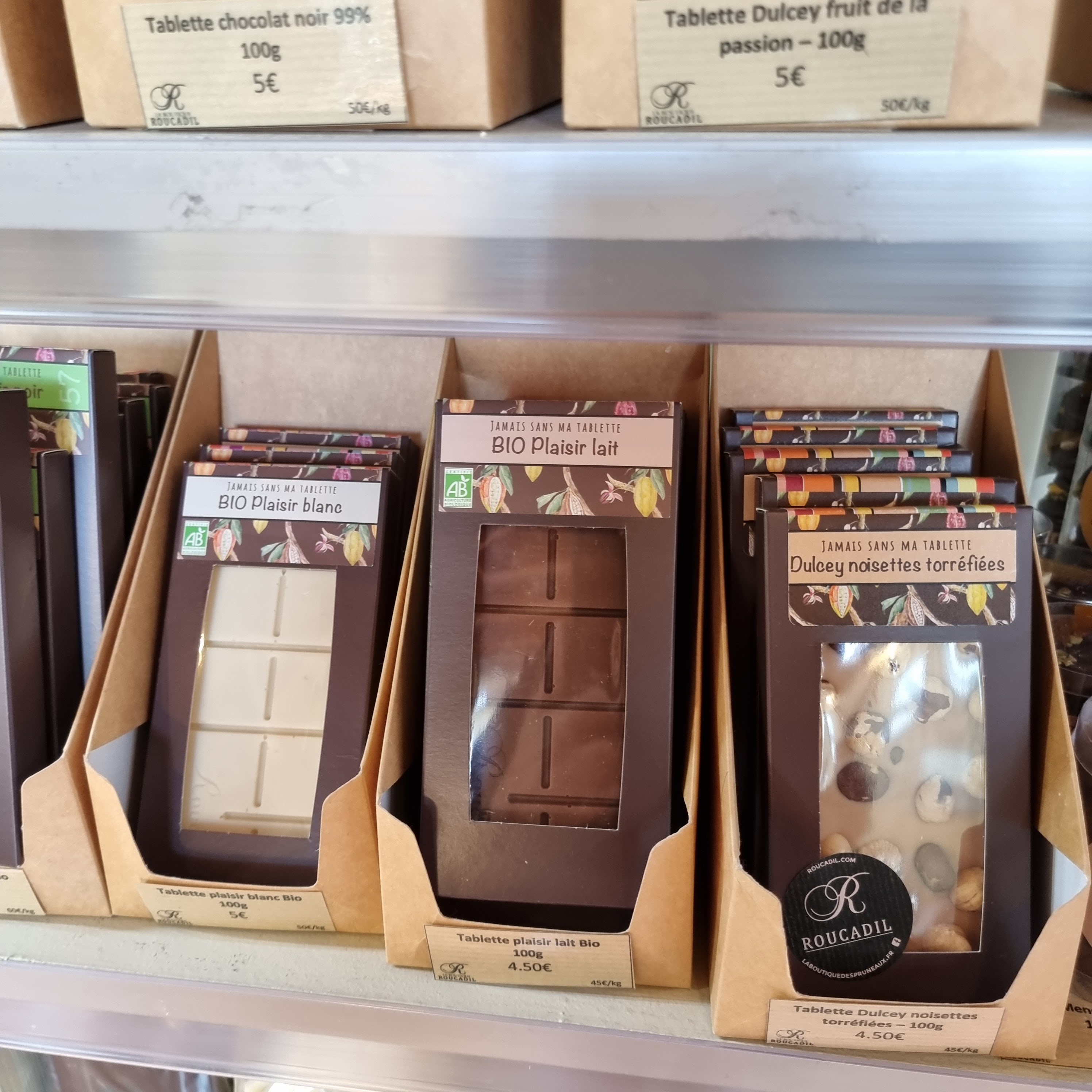 Beau magasin Accueil agréable Les pruneaux au chocolat sont excellents.