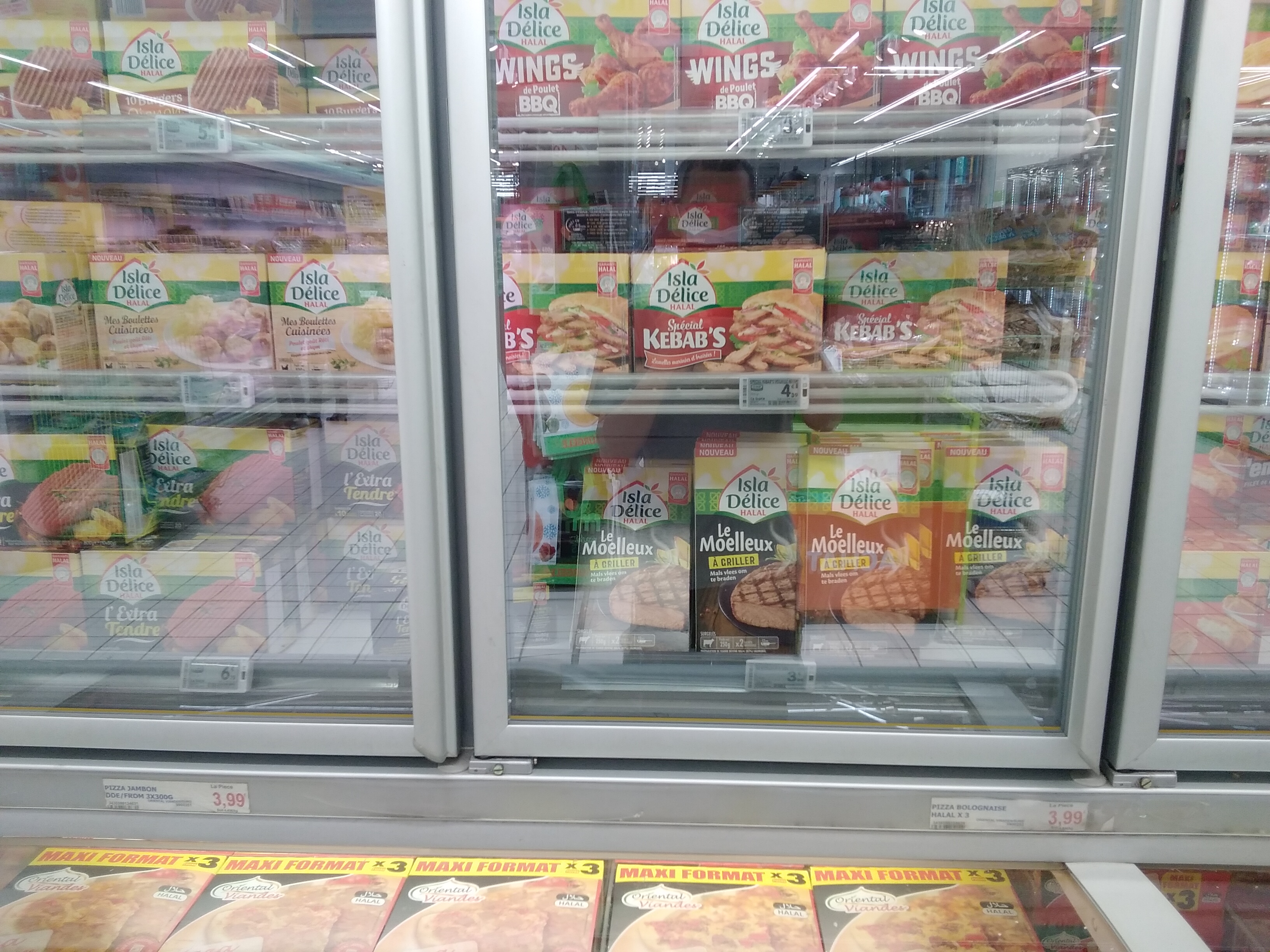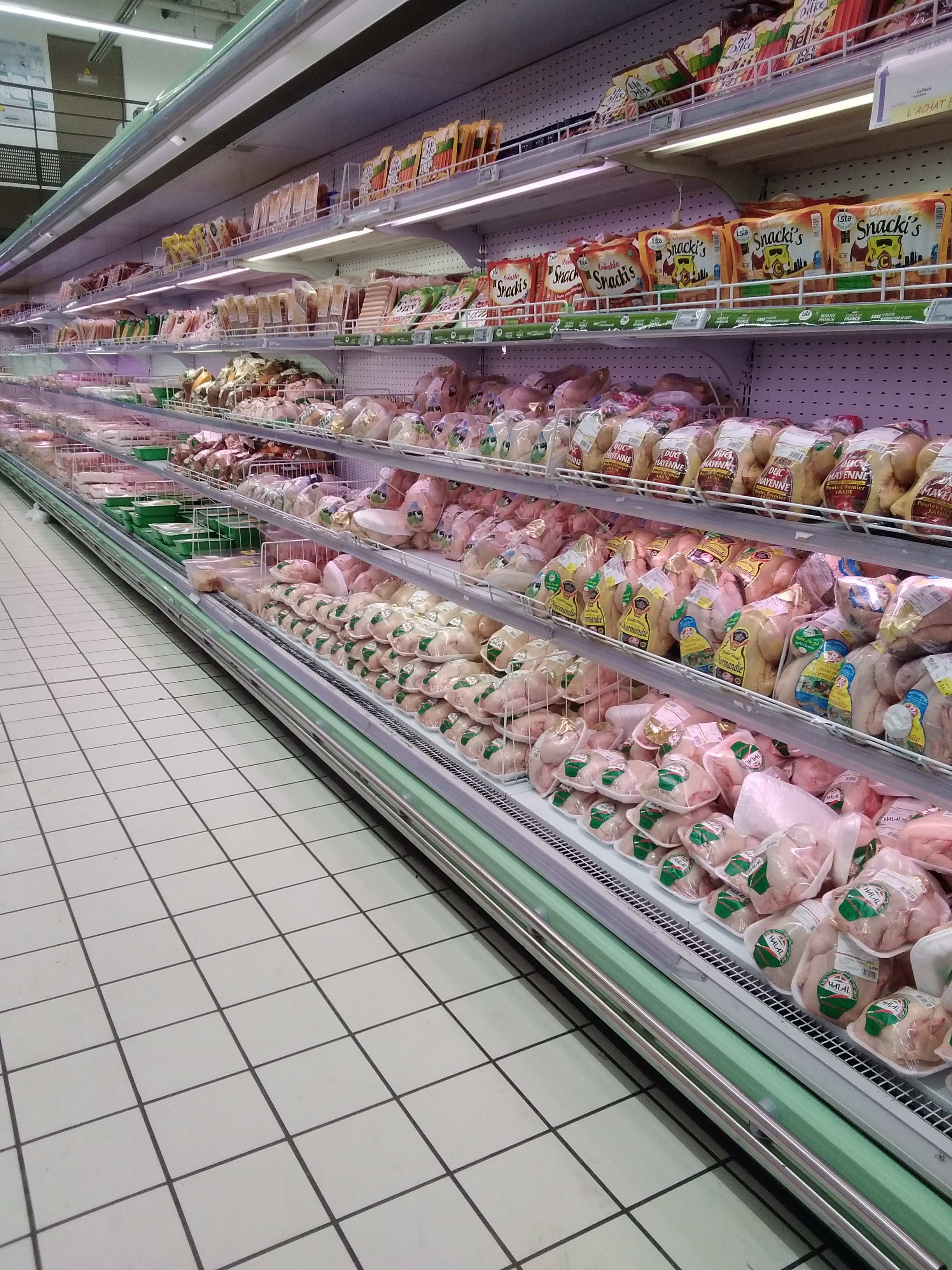 Très grand, beaucoup de monde le weekend car certains produits sont bien moins cher qu'ailleurs. Moi j'ai pris un petit poulet à 2,85€ pour la soupe. Beaucoup de produits halal sont marqués dessus.