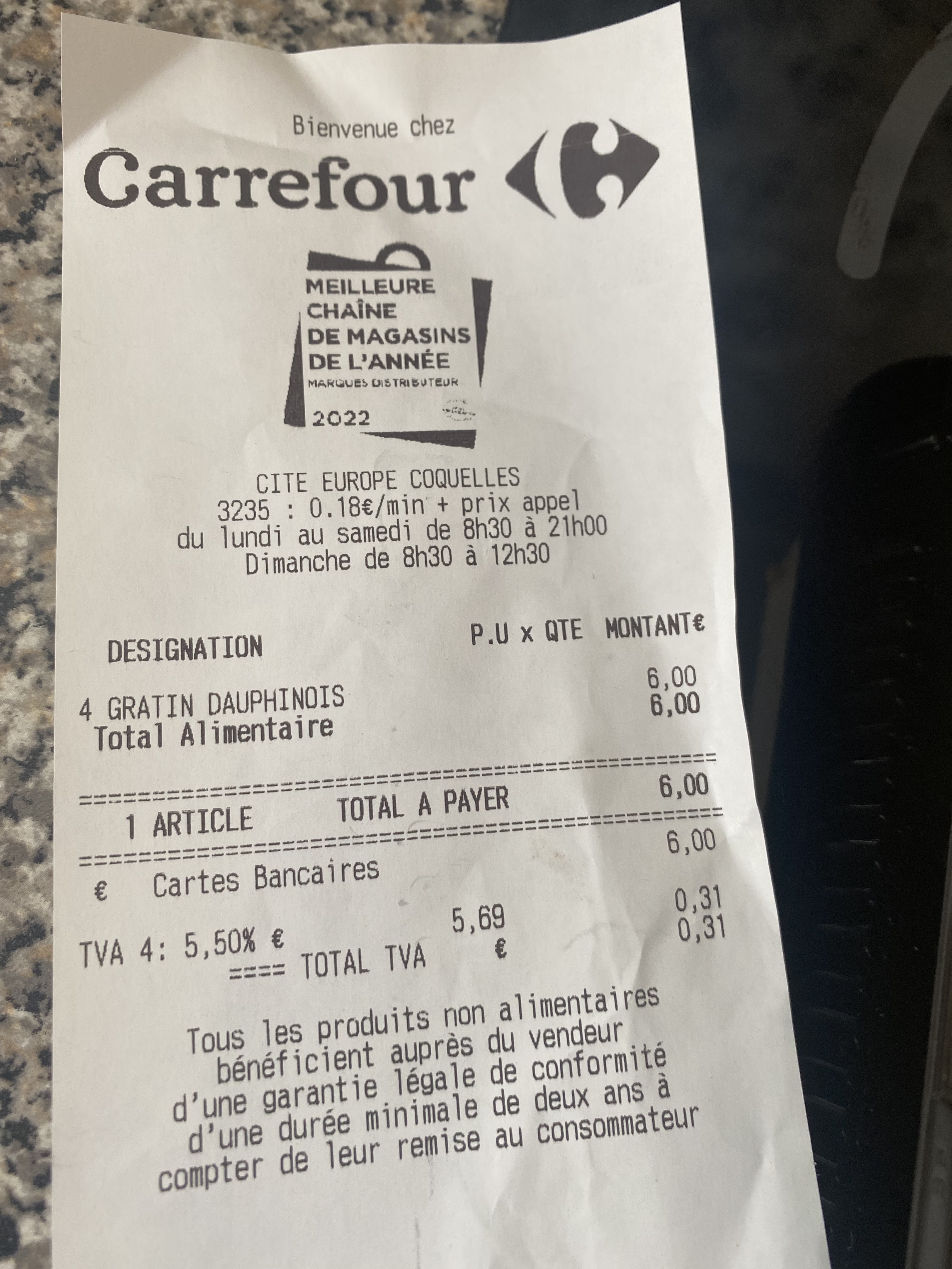 Mercredi dernier j’ai commandé 15 gratins dauphinois à carrefour virval car habituellement j’en prends souvent et je ne suis jamais déçu bien présenté et assez copieux la promo 2 acheté 1 gratuit J’envoie mon mari on lui en donne 15 mis dans des barquettes en aluminium comme à la cantine et pas remplis du tout sans promo on lui fais payé 45 euro pour les 15 c’est à dire 3 euro la barquette Je téléphone on me dit que au virval ce n’est pas pareil que dans les autres Carrefour car ce carrefour là à été racheté Je vais voir le directeur il me rembourse tout de même les 15 euro car il y avait la promo mais avant ça je me suis déplacé à carrefour citée Europe et j’ai eu 3 gratin pour 6 euro dont 1 gratuit et super bien présenté etc Regardez la différence entre le virval et carrefour Coquelles y’a pas photo