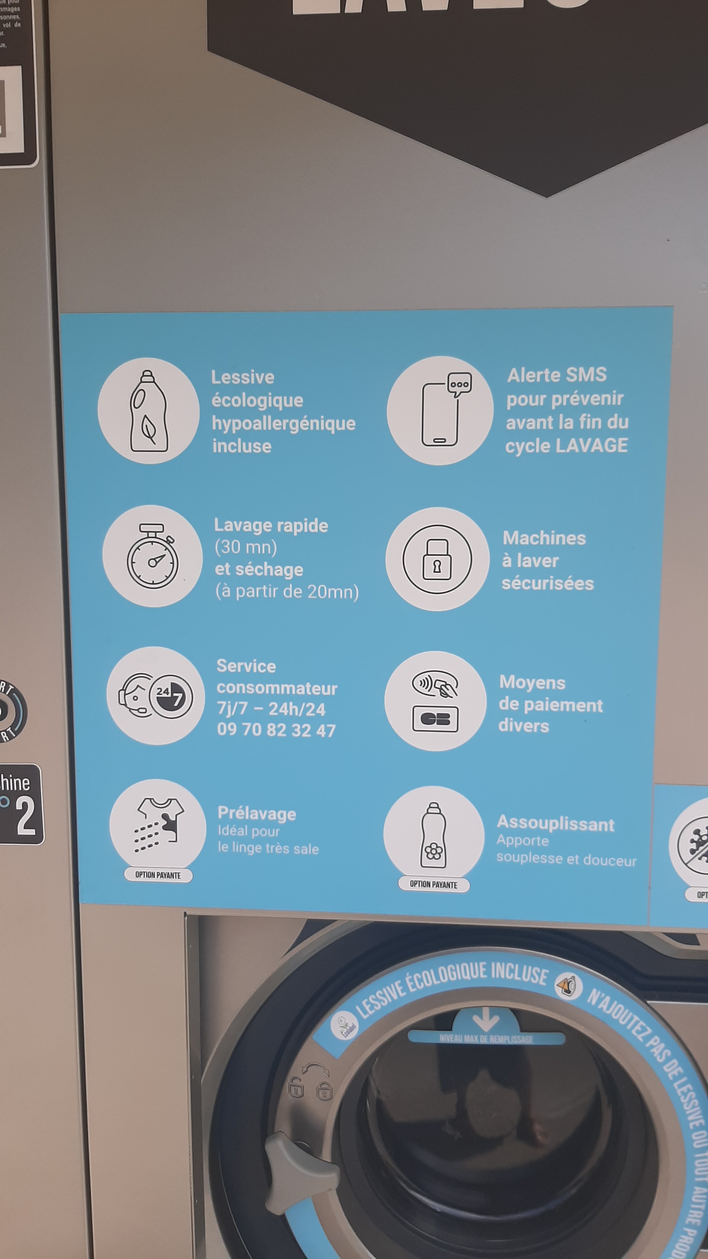 Attention laverie machine qui est à carrefour market Sassenage 20kg n'a même pas essoré ma couette et toute sale en plus.10€ pour rien. Au lancement du lavage Message en panne court circuit du coup 2 appels à l'assistance mais Zéro aide même pas pû ouvrir le hublot pour la récupérer.Heureusement leur technicien passé par hasard, en même temps que j'avais l'opératrice en ligne, a pu relancer la machine. Mais au bout des 35 min de lavage j'ai récupéré ma couette tte trempée donc non essorée et pleine de particules noires. Mauvaise qualité de laverie!