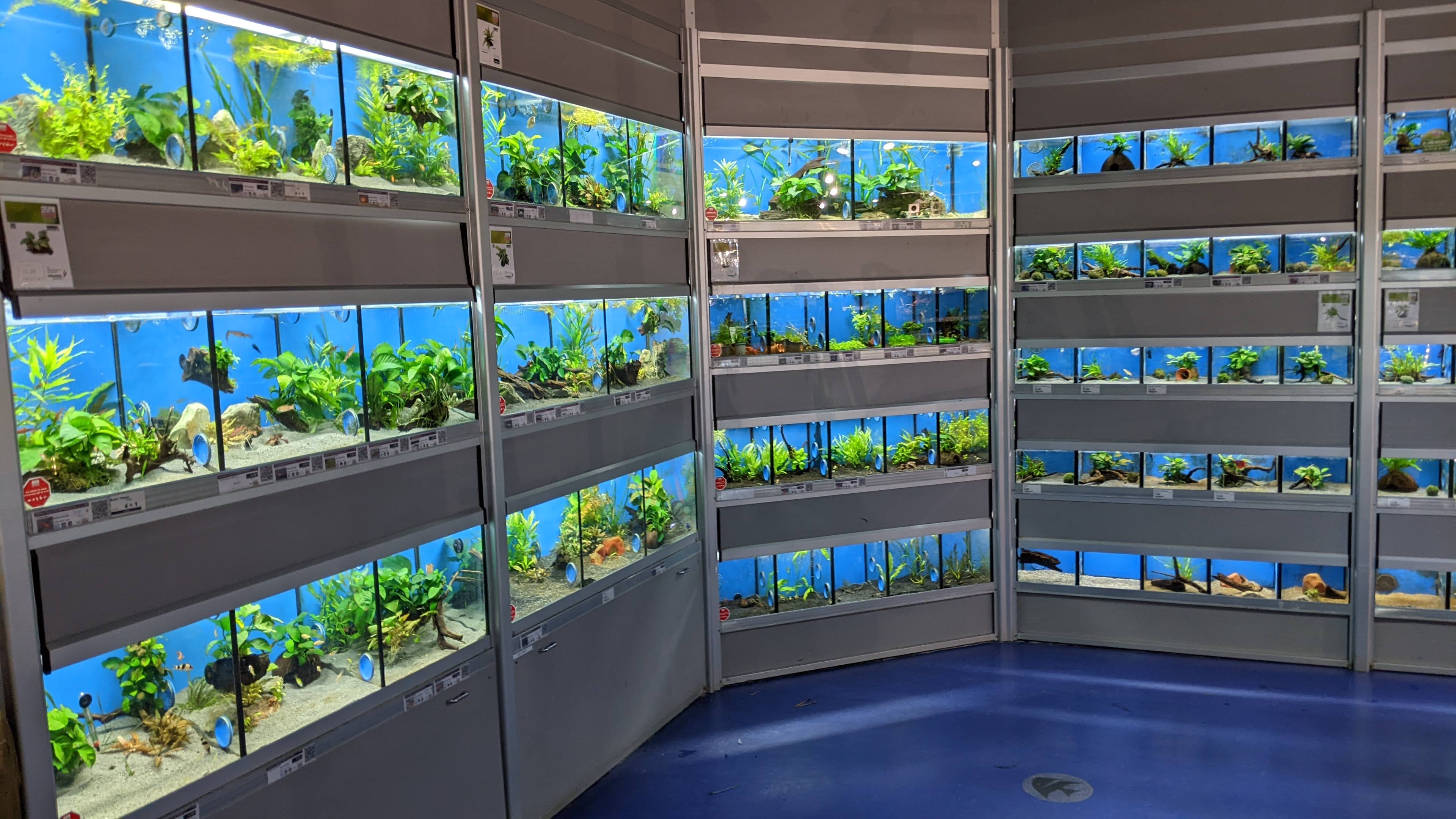 Grand avec un large choix d'articles. Cependant, il est dommage de voir des poissons morts dans les aquariums en compagnie des autres poissons !