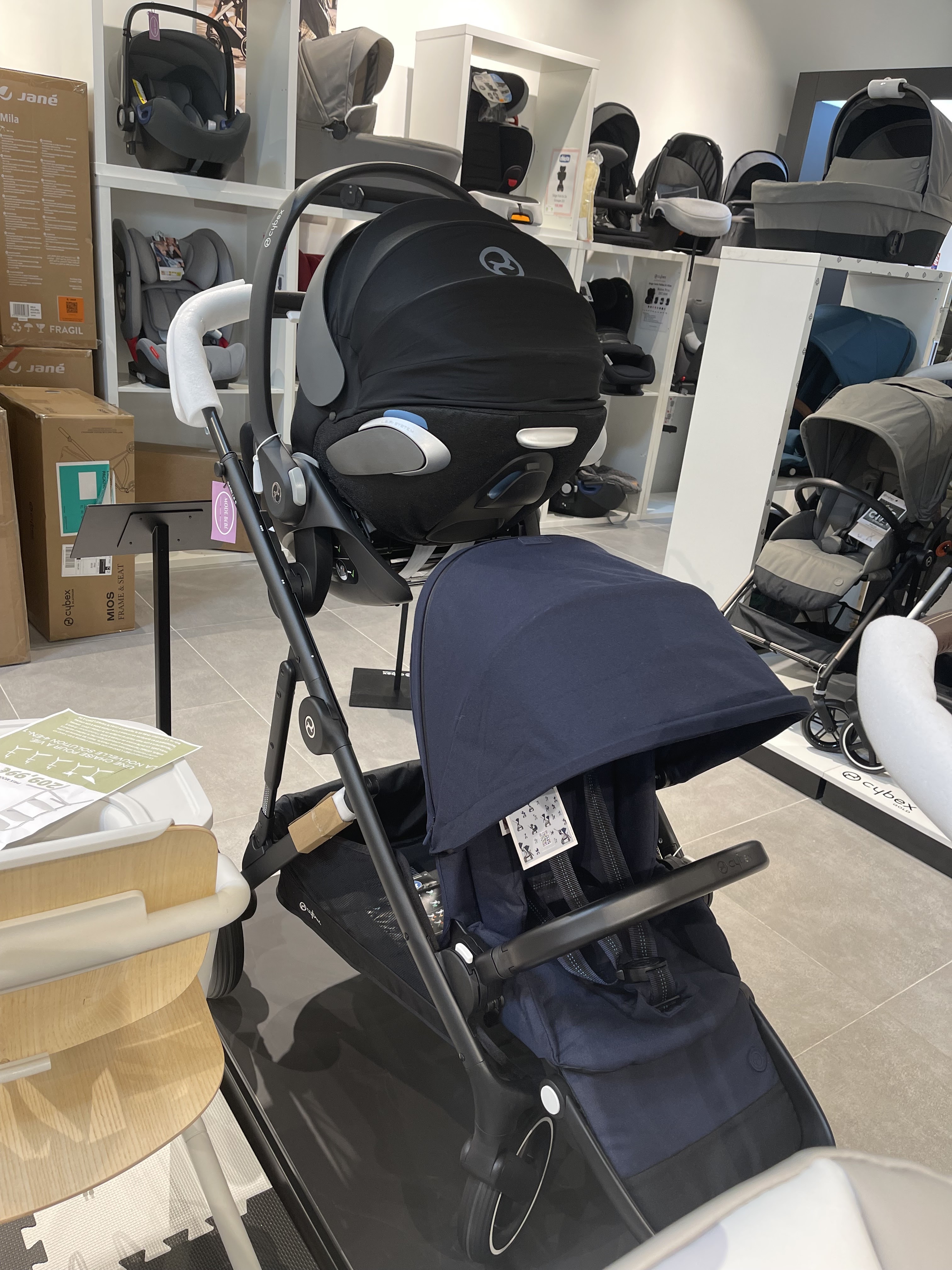 Belle boutique pour bébé et nous achetions des poussettes pour notre bébé Tako