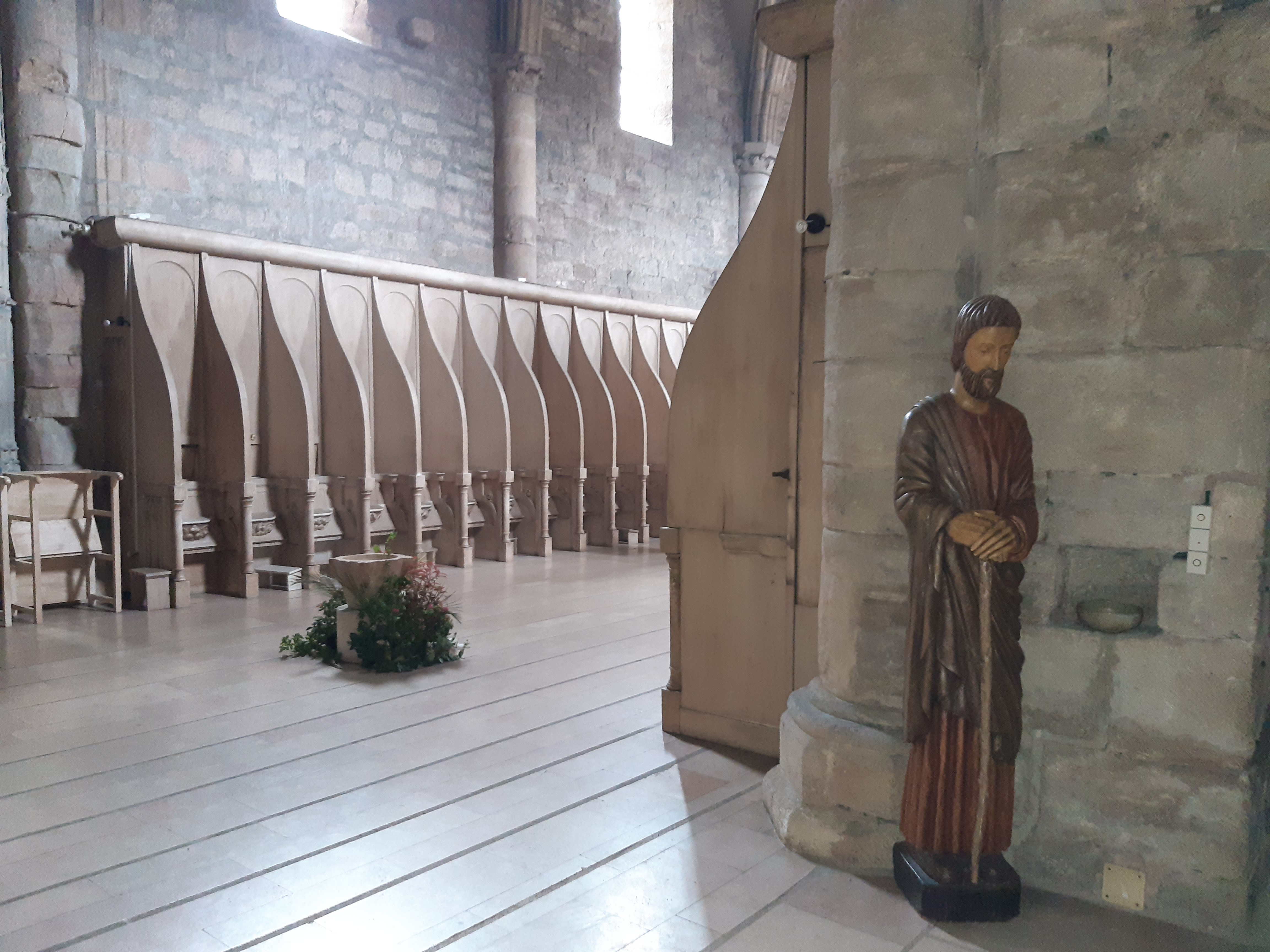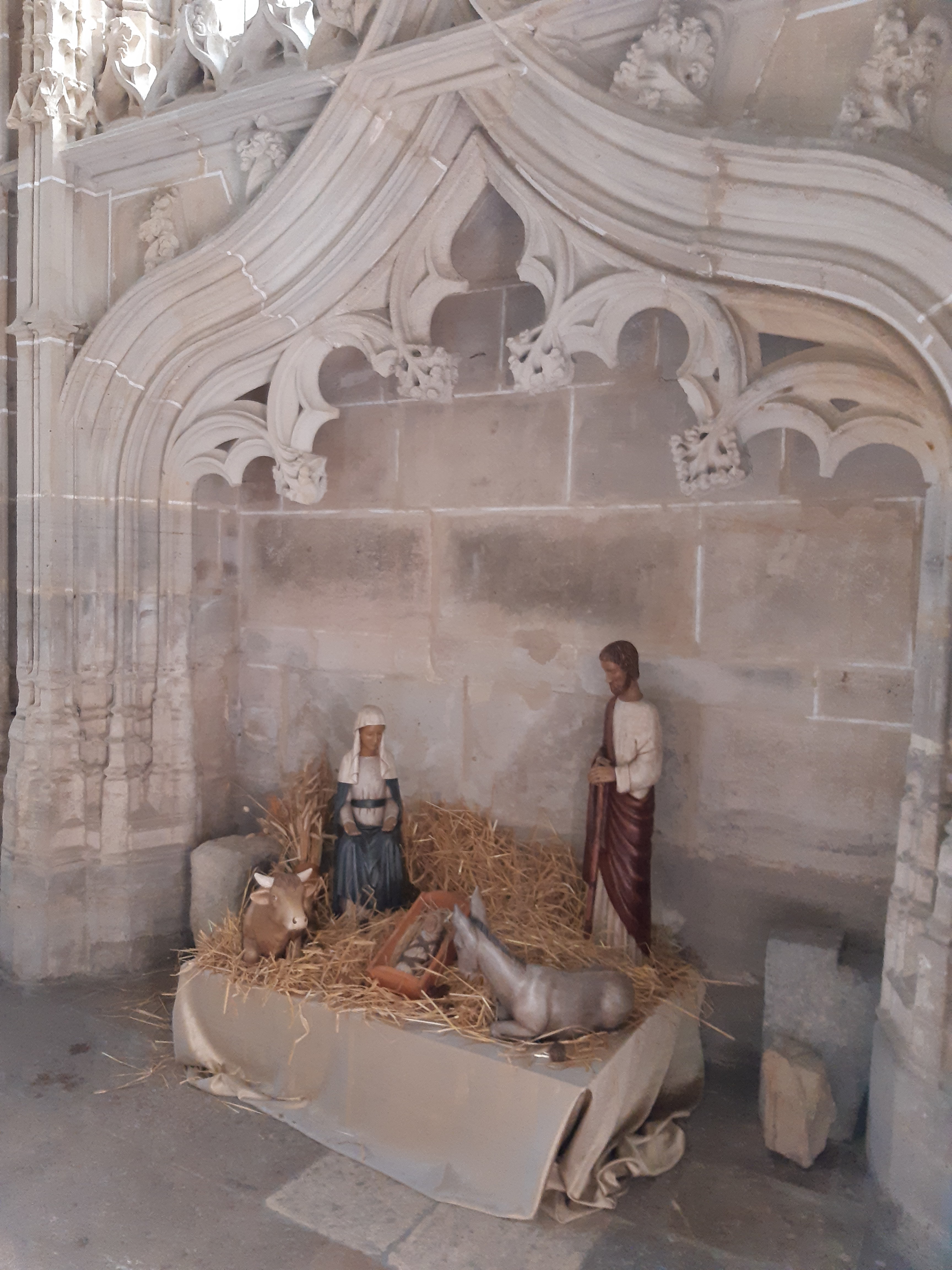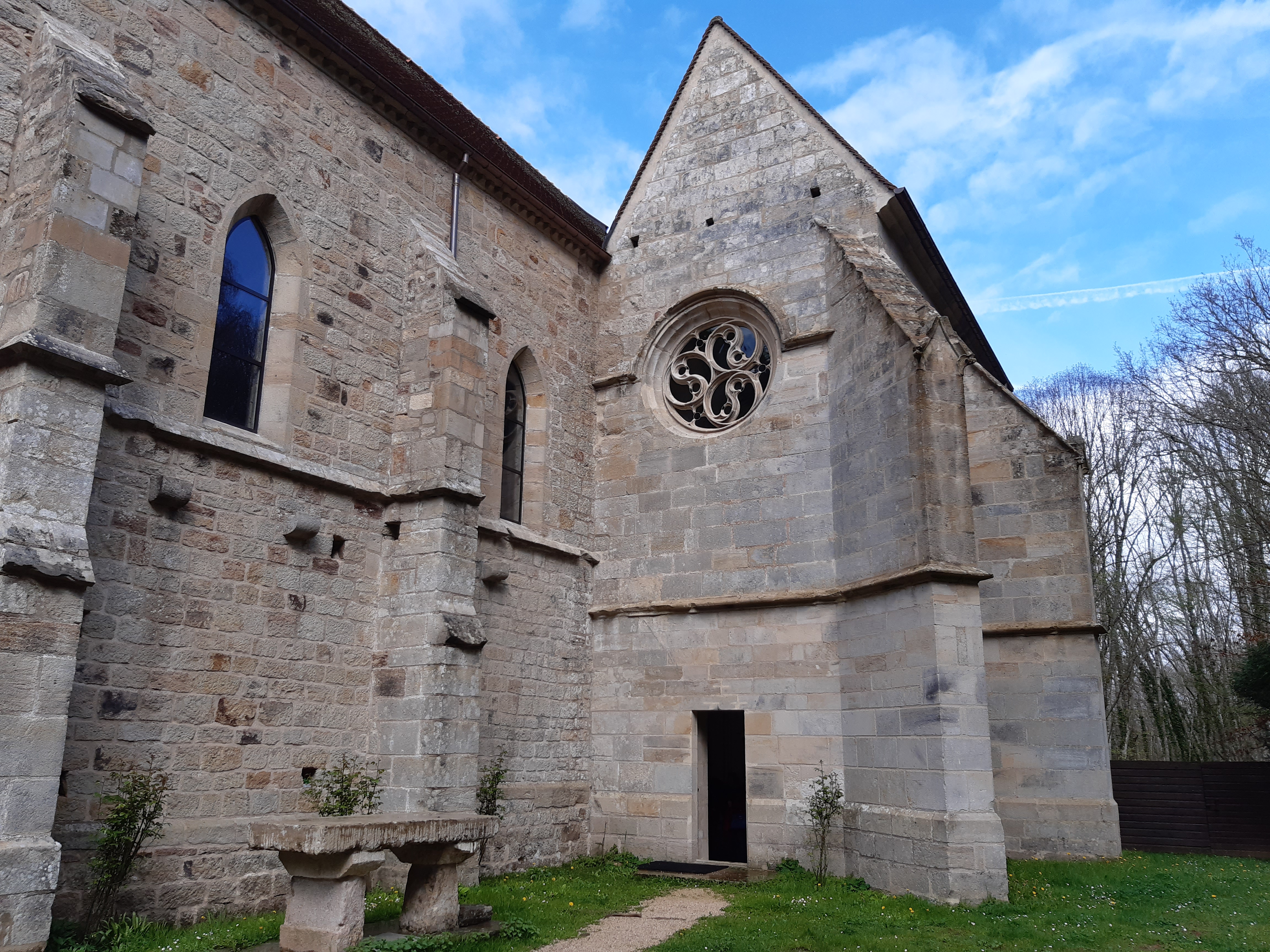 Les sœurs de Bethléem qui occupent les lieux depuis déjà plus de quarante ans pour le restaurer auraient pu reprendre à leur compte cet ancien slogan publicitaire :Vous ne viendrez pas chez nous par hasard. Parce qu'en effet, il faut le connaître pour le trouver ce magnifique Prieuré du Val Saint-Benoît, isolé au beau milieu de la forêt jouxtant la petite commune d'Epinac dans le Morvan, et même muni de Google Maps, à la patte d'oie où un écriteau en bois indique le monastère, bien penser à prendre à droite sur le petit chemin qui y conduit, sinon à gauche vous continuerez sur une route forestière où les demi-tours sont difficiles ! (On a testé pour vous...). Mais une fois garés sur place, c'est un peu l'effet Waouh, un tout petit monastère dont on peut faire le tour en quelques minutes : Une jolie église lumineuse et entièrement rénovée au fil des ans par la petite trentaine de religieuses qui y vivent aidées d'artisans spécialisés dans les monuments historiques, la petite chapelle des loges attenante au bâtiment abrite une jolie crèche éclairée par de larges et lumineux vitraux. Les sœurs, quant à elles, restent discrètes derrière les larges murs du monastère, mais si vous sonnez à l'interphone de la petite boutique où sont exposés les céramiques et autres articles artisanaux qu'elles vendent ou confectionnent, elles se feront un plaisir de vous accueillir avec un sourire rayonnant pour vous expliquer toute l'histoire du Val Saint-Benoît de son origine (en 1237) à nos jours. Bref, un lieu hors du temps à découvrir vraiment, une parenthèse de sérénité et calme où la vie semble s'écouler paisiblement au milieu d'un monde qui évolue parfois trop vite, et s'y ressourcer ne serait-ce que l'espace d'une petite heure, ça fait un bien fou ! (Sans compter que les petits bijoux en argent à 12 € que l'on a achetés à la boutique sont jolis comme tout, à défaut d'avoir pris le bel ange Gabriel en bois, majestueux qui nous faisait de l'œil, mais hélas un peu trop cher... Une prochaine fois peut-être s'il nous a attendus !)