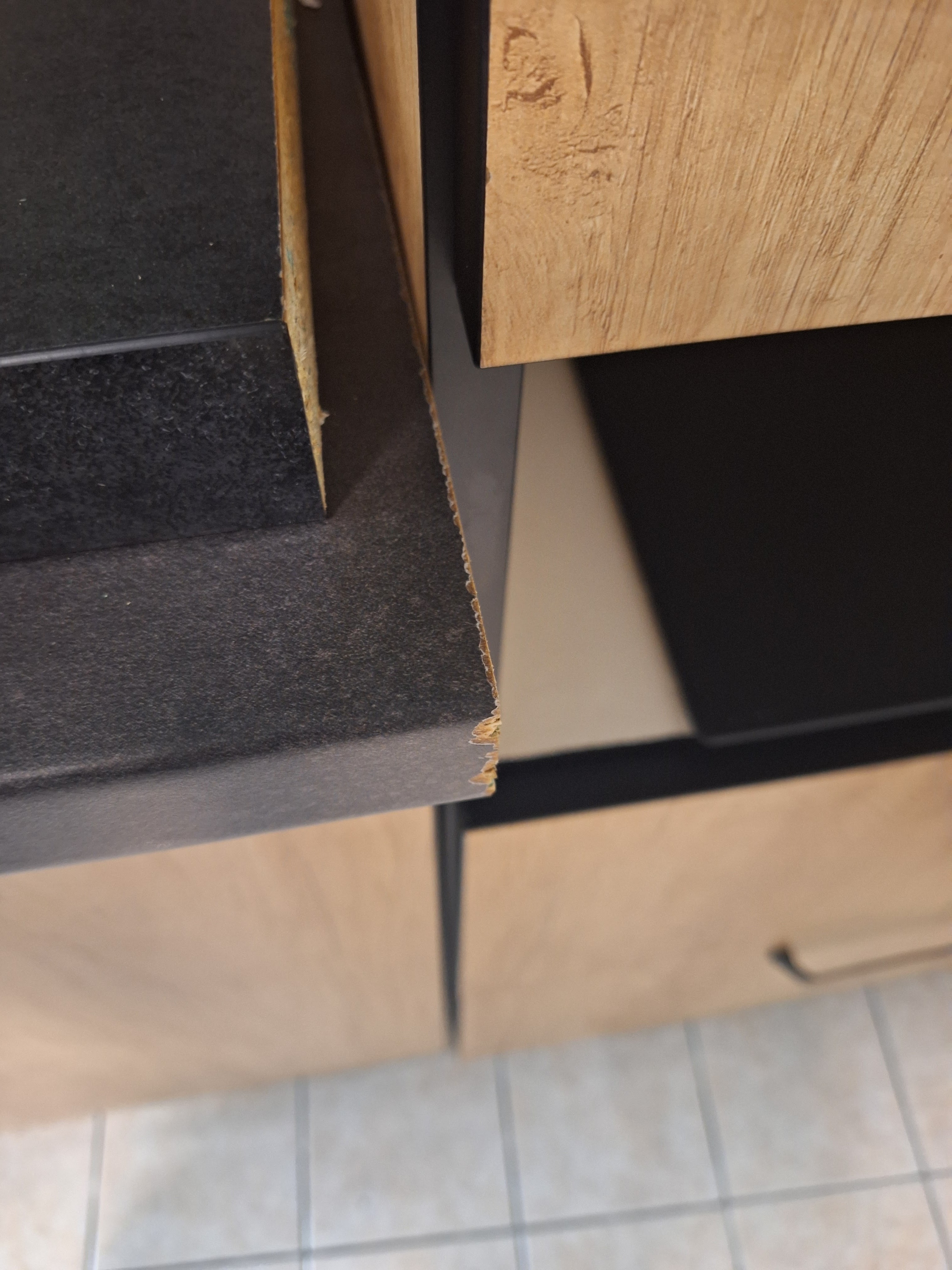 Fidèle cliente puisque habitant dans la commune, je privilégie les commerces de proximité. Après de multiples achats de TV, matériels de bricolages divers, pots de peinture, salon de jardin, transats (qui se délitent au bout de quelques semaines d'utilisation), table (livrée montée que j'ai du démonter pour réparer un pied) , chaises, etc, j'ai acheté le 12 décembre un plan de travail (109 €) que j'ai récupéré le 13 puisqu'il fallait le découper. Je vous laisse le soin de constater l'horreur du travail réalisé qui est donc à refaire et donc il ne sera plus à la bonne longueur. Vous pouvez également constater des marques sur la tranche, que je n'ai pu remarquer qu'après déballage. Elles n'ont pas été faites durant le transport puisque je l'ai assuré moi-même après qu'on m'ait proposé de payer 35€ pour parcourir 800 mètres... Je n'y retournerai plus jamais.