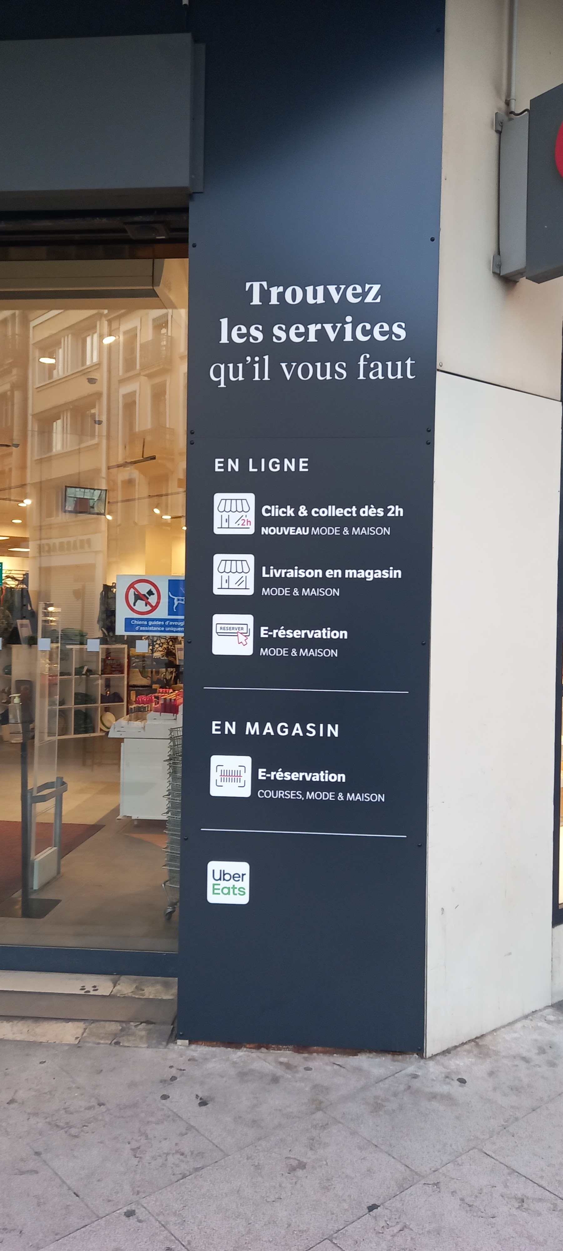 Magasin jouissant d'un excellent emplacement en ville,à proximité de la gare. Bon feng shui. Attractivité permanente. Dommage que le rayon alimentaire soit situe au fond du magasin. On aurait pu inverser alimentaire et vestimentaire. Attente en caisses un peu longue. Le design des caisses semble un peu vieillot, rien pour poser son panier de courses lourd. La surveillance semble un peu trop visible. À l'entrée , souvent des SDF occupent le terrain. Deux portes d'accès magasin seraient plus faciles et pratiques.( entrée /sortie ) et permettraient une meilleure circulation clientèle. La création d'un espace detente et pause café-restauration rapide sur place, serait dans l'air du temps.😊