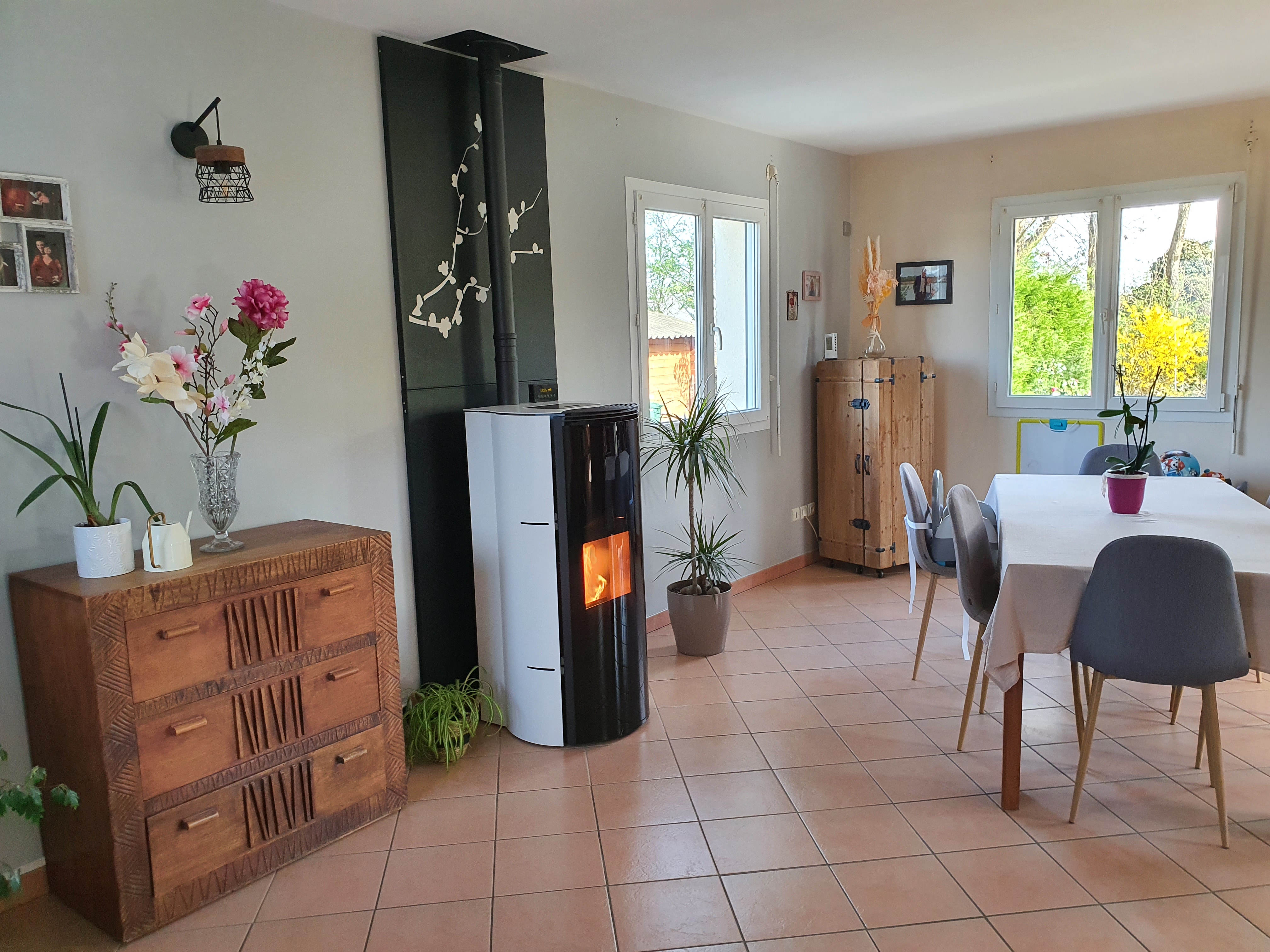 Enlèvement de notre poêle à bois et remplacement par un poêle à granulés. Travaux effectués par une équipe pro et sympas !! Suivi effectué par Sébastien qui nous à installer l'application sur notre téléphone et donné des conseils. Du coup une chaleur douce nous attend après une journée de travail.