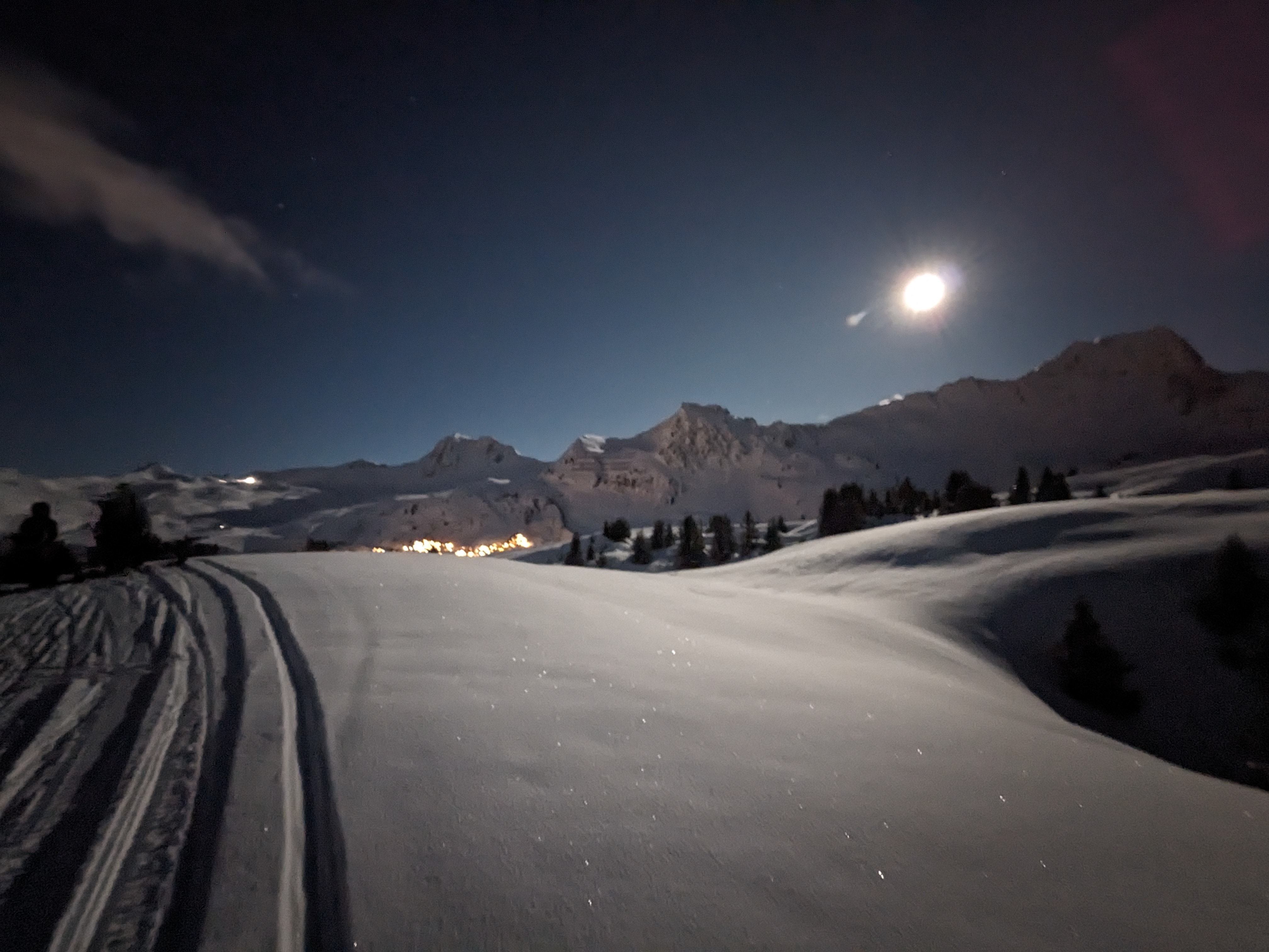 Magnifique balade d'une heure sur les hauteurs de la Plagne. C'est vraiment physique de maintenir la machine dans les bosses mais quel plaisir ! On peut y apprécier un magnifique ciel étoilé loin des lumières de la ville c'est magnifique.