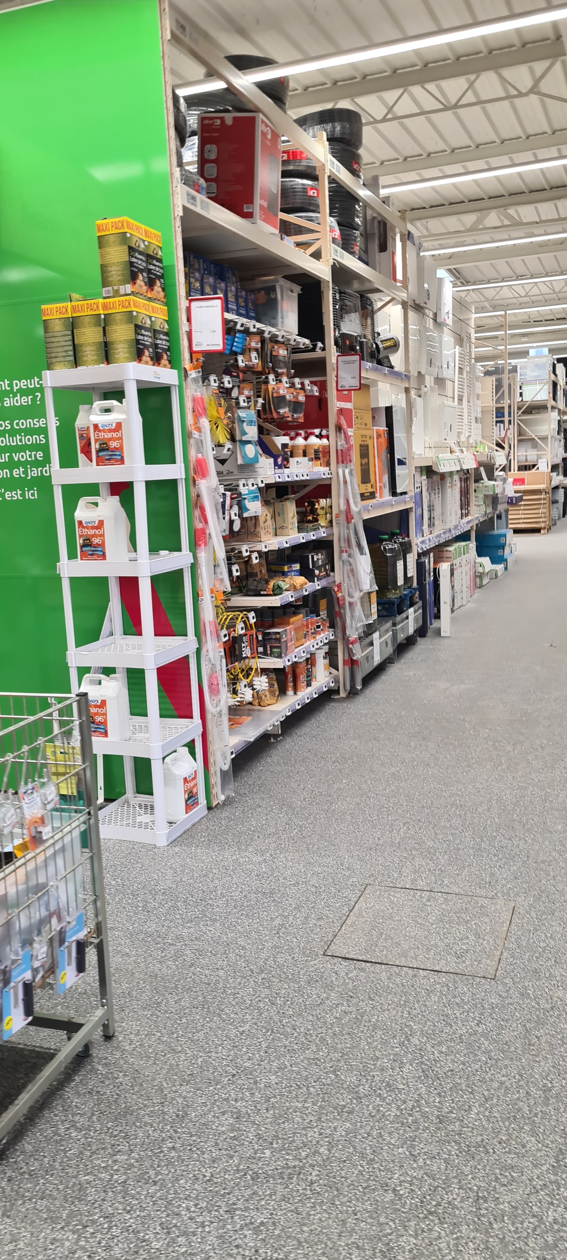 Magasin bien achalandé rayon peinture très complet certain produit sont un peu chère Par contre si on ce trompe de produit il rembourse si on a garde le ticket de caisse Le personnel est disponible et compétent et les caissières souriantes le rayon jardinage est très complet à des prix très intéressant Le parking est très accessible et il y a toujours des places libres