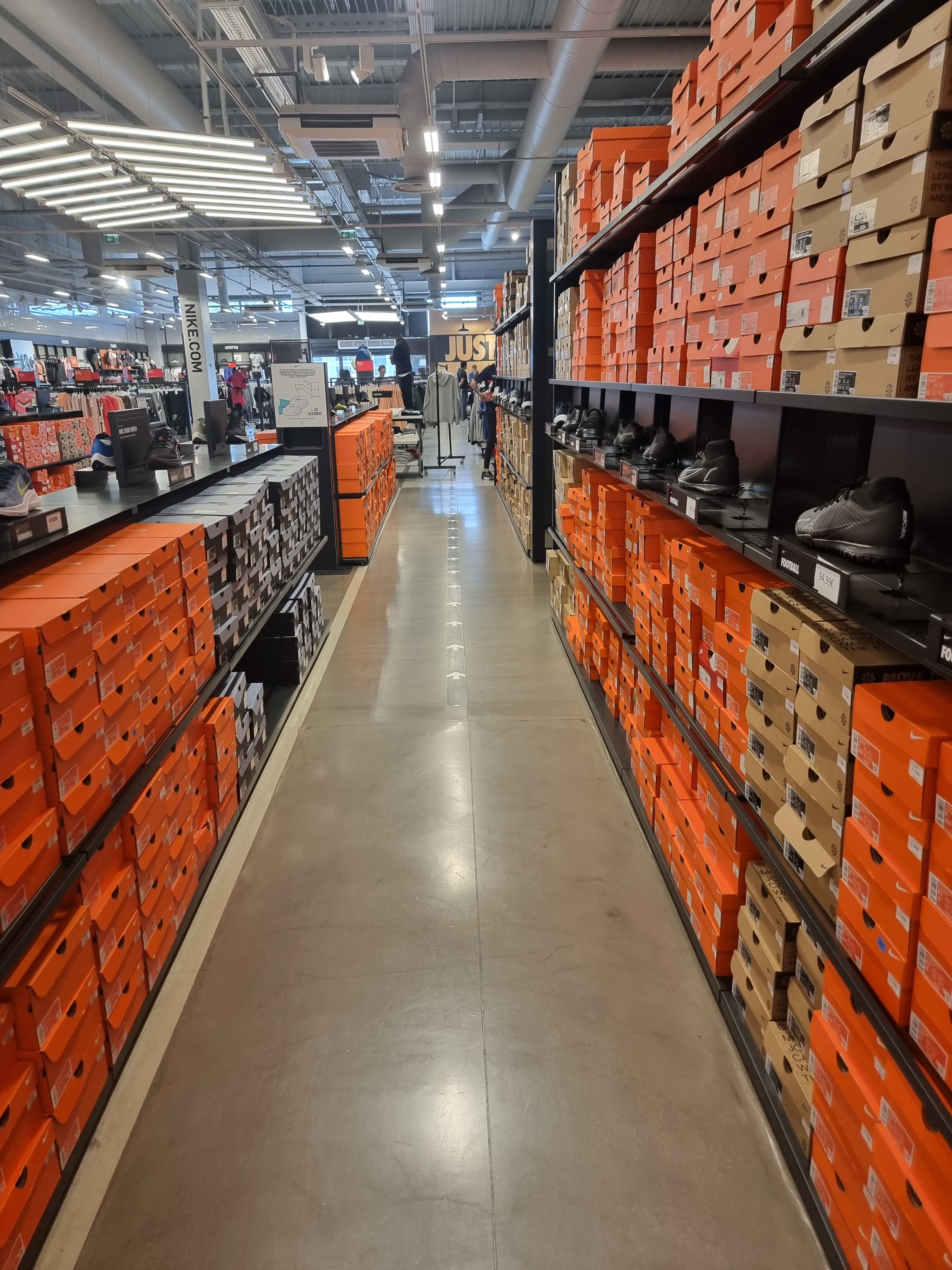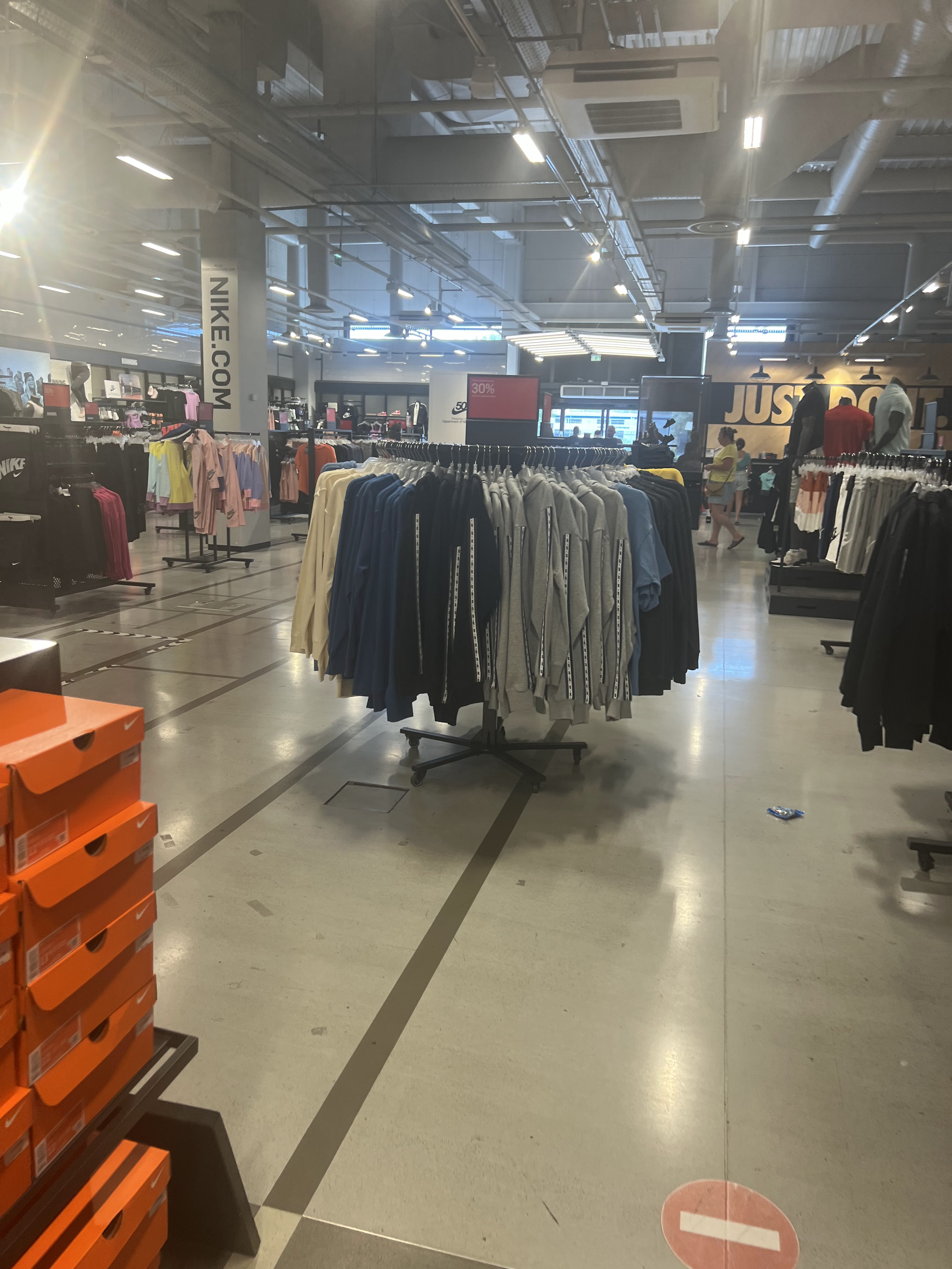 NIKE STORE ne se présente plus...le DIMANCHE c'est tout simplement hallucinant. Du monde,du monde,du monde...Le magasin est plein à craquer. Les bonnes affaires sont surtout au rayon chaussures. Le reste est proposé avec des remises assez intéressantes. Même par temps DE COVID la fréquentation est très importante. A vous de voir...