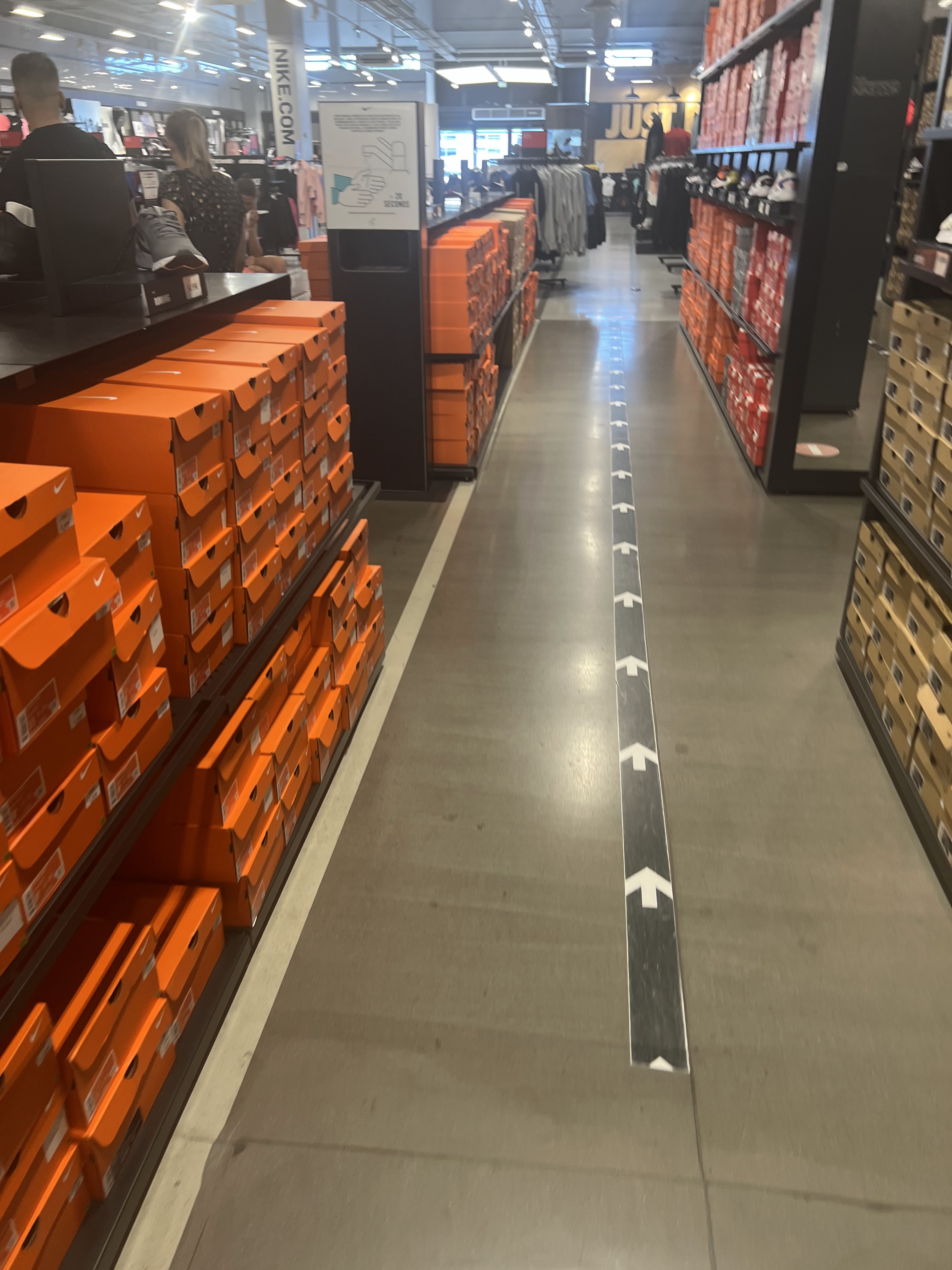 Tout un cinéma inutile (double file d attente..dont une en plein soleil devant le centre commercial)pour rentrer suite covid..et Nike ne propose pas de pouvoir essayer avec desinfection des vêtements par la suite comme dans beaucoup d autres magasins de même gamme dommage.