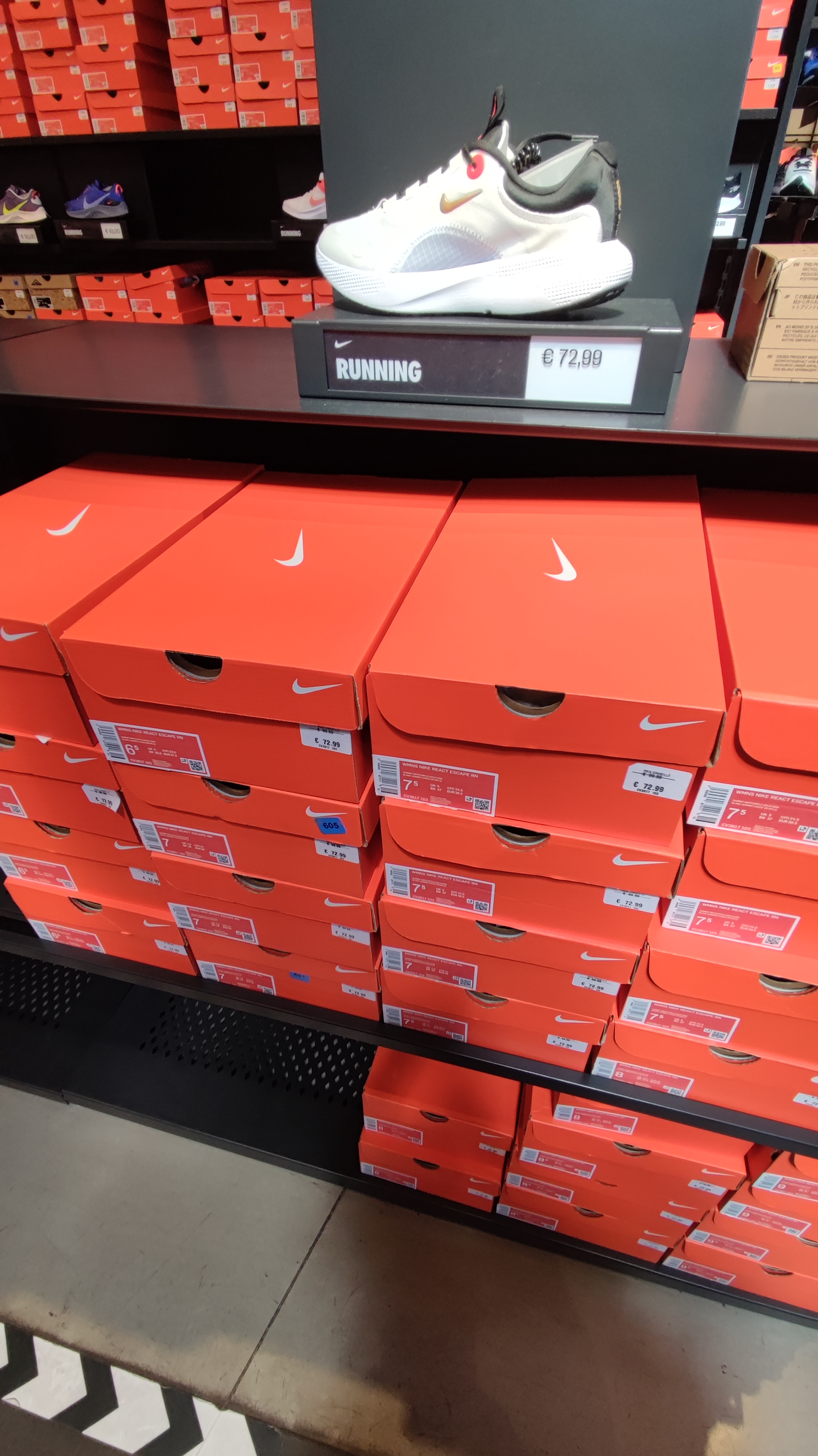 La présentation des chaussures est vraiment nul , toutes dans leur boîtes , ils faut les sortir une par une pour les regarder... Aucun choix bébé pour un grand magasin exclusive Nike j'ai pas compris.... 1 seul vendeur pour tout le magasin, faut donc le chercher lui courir après et faire la queue pour avoir un renseignement