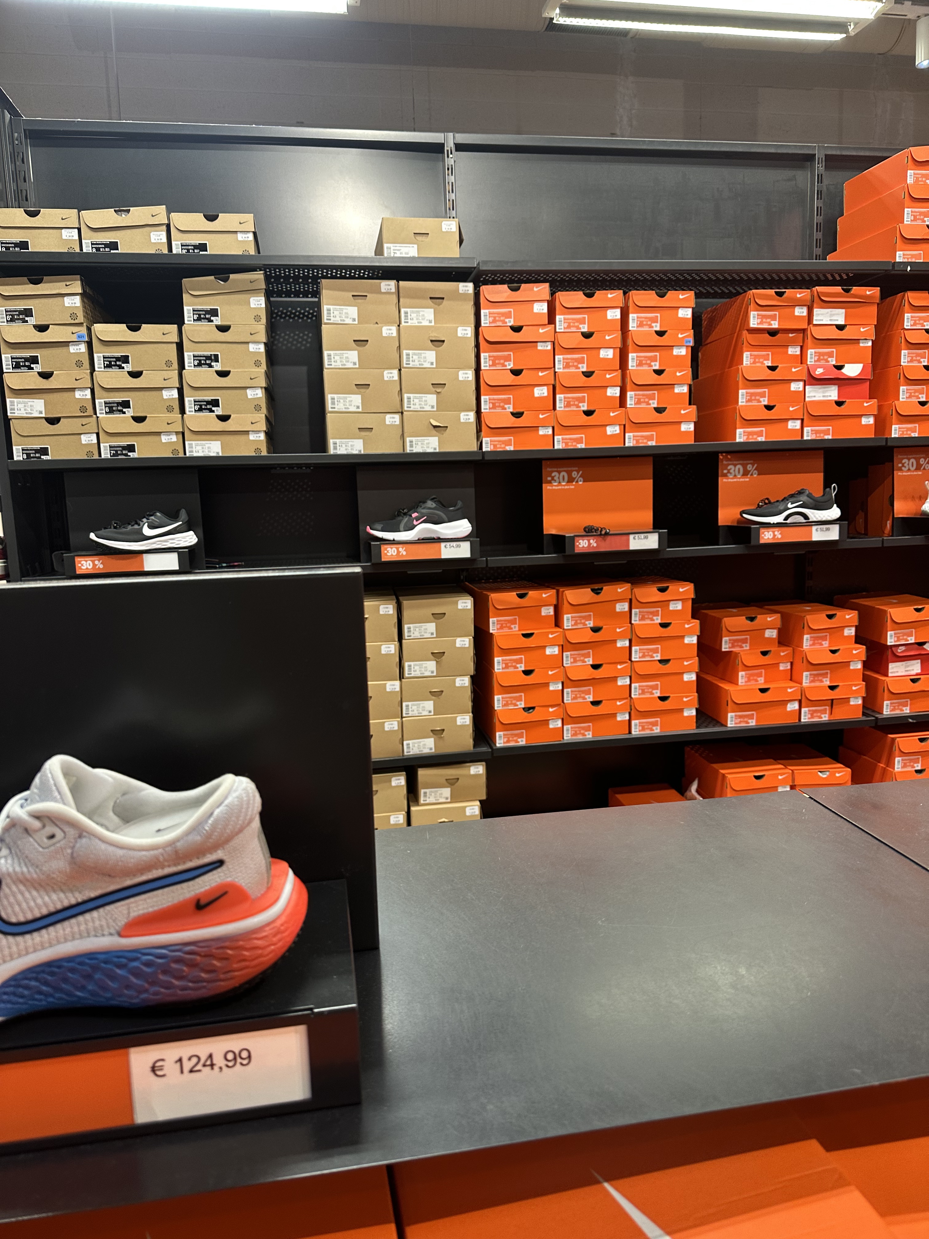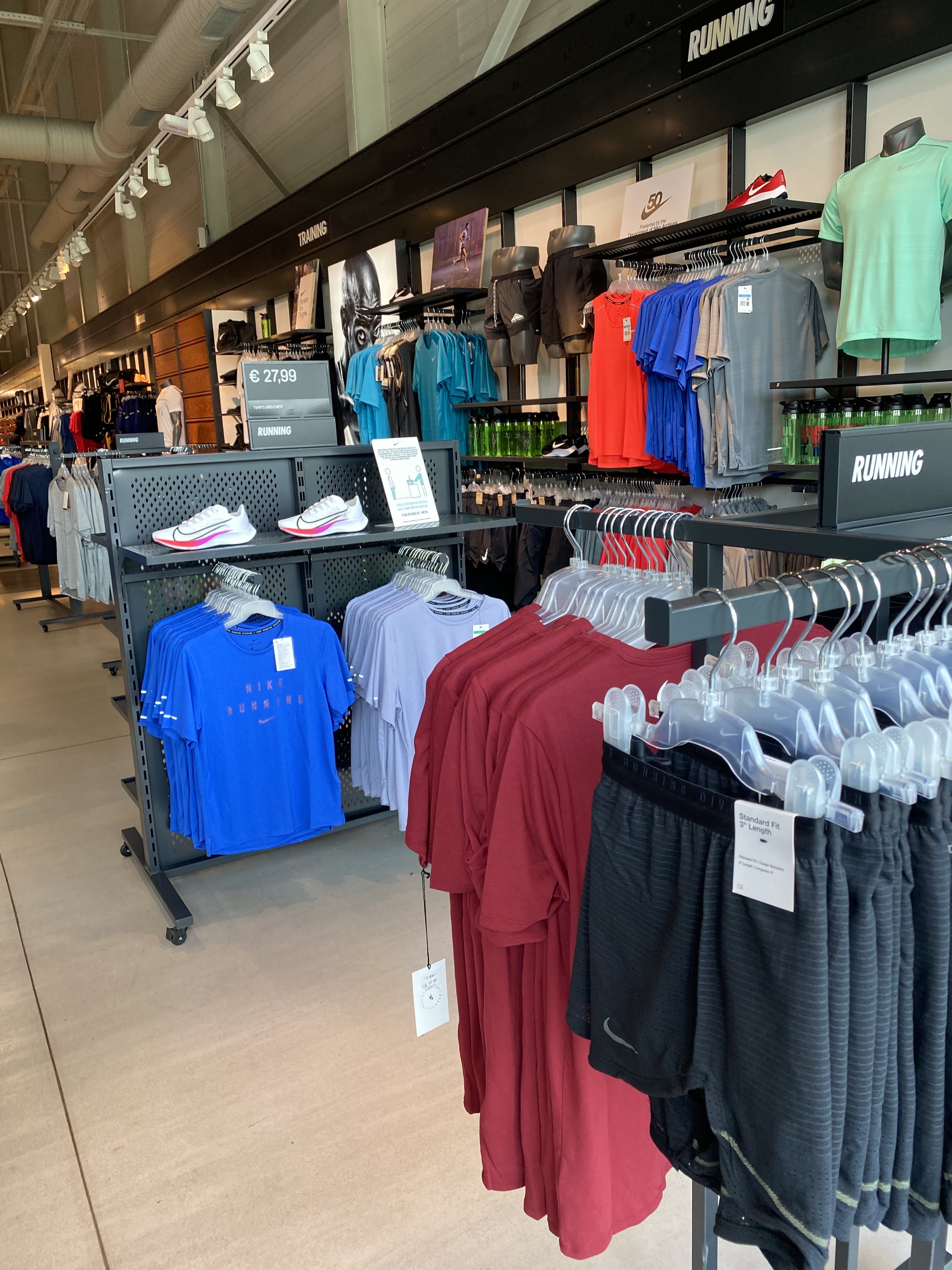 Le format « Nike magasin d’usine » avec ube selection satisfaisante d’article de votre marque préférée, à des prix franchement discountés ! Il y a un portant avec des articles proposés à - 50% ... sur le prix « usine » : irresistible !
